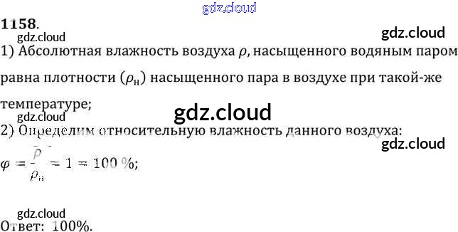 Ответ на задание 1158 Сборник задач Физика за 7, 8, 9 (седьмой, восьмой, девятый) класс Лукашик, Иванова 2011