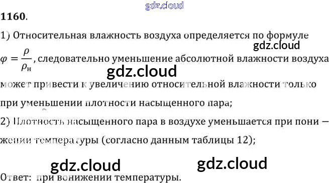 Ответ на задание 1160 Сборник задач Физика за 7, 8, 9 (седьмой, восьмой, девятый) класс Лукашик, Иванова 2011