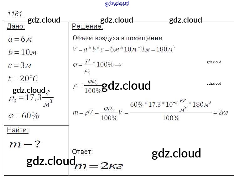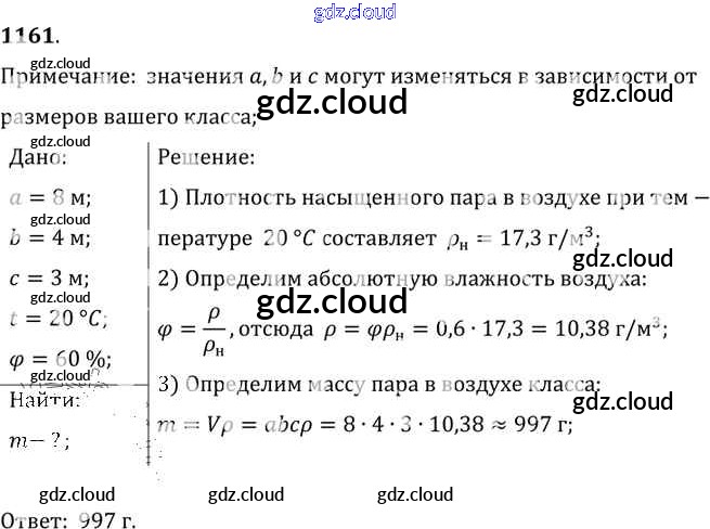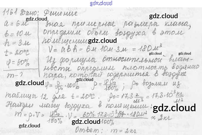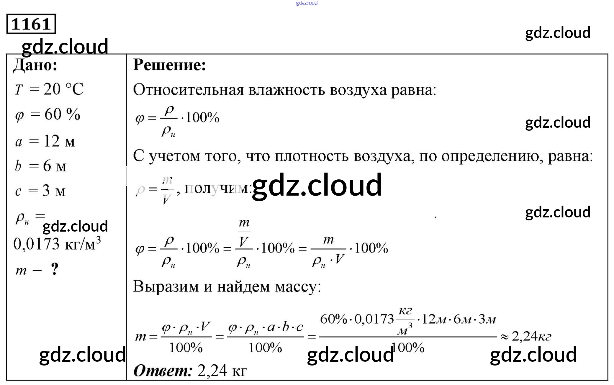 Ответ на задание 1161 Сборник задач Физика за 7, 8, 9 (седьмой, восьмой, девятый) класс Лукашик, Иванова 2011