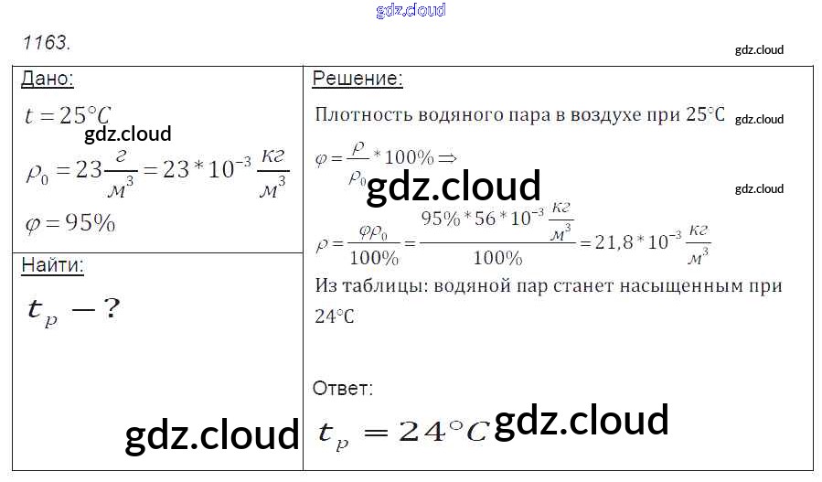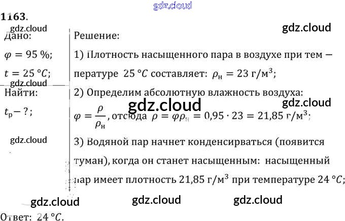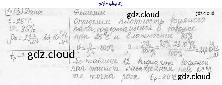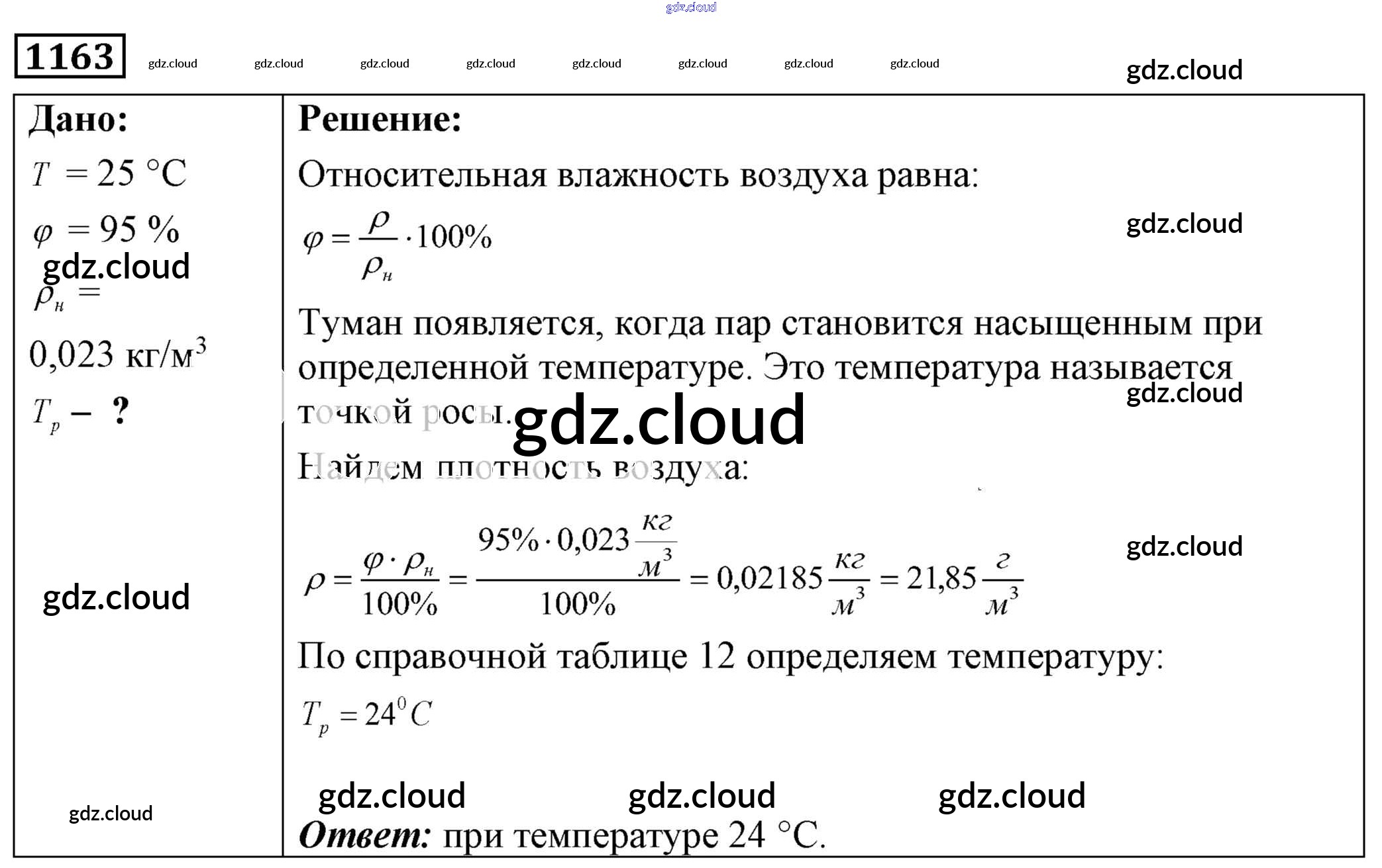 Ответ на задание 1163 Сборник задач Физика за 7, 8, 9 (седьмой, восьмой, девятый) класс Лукашик, Иванова 2011