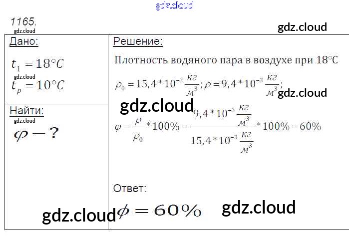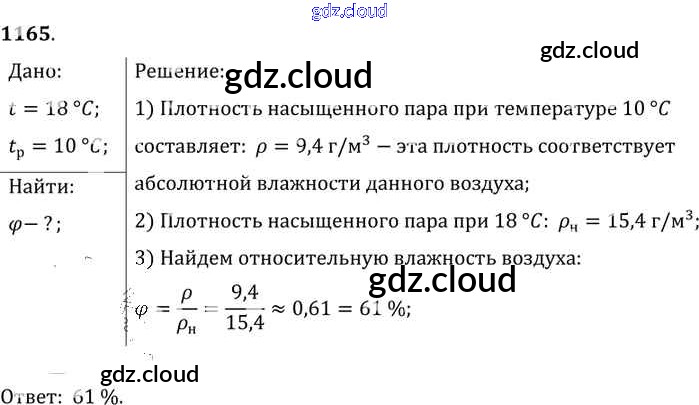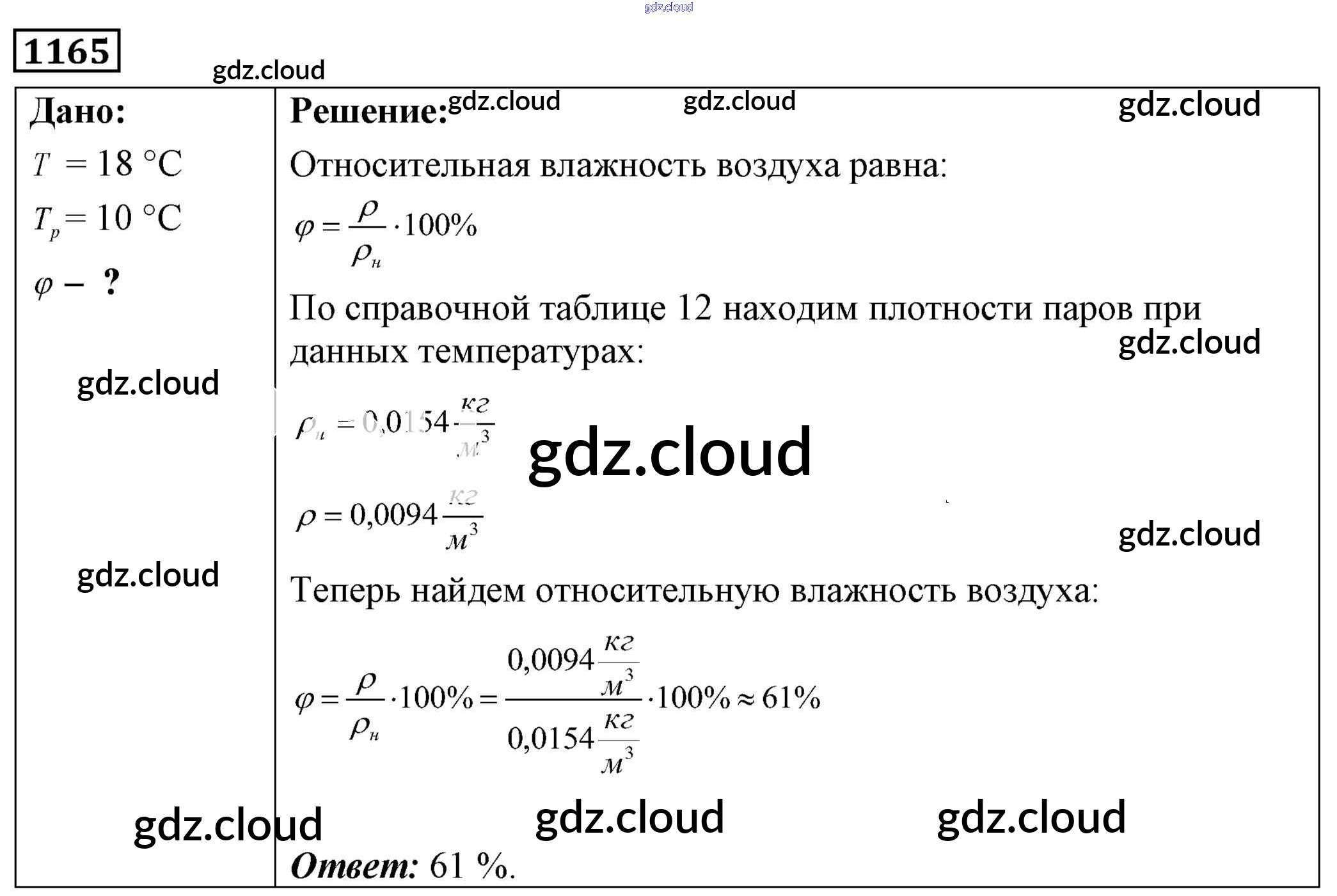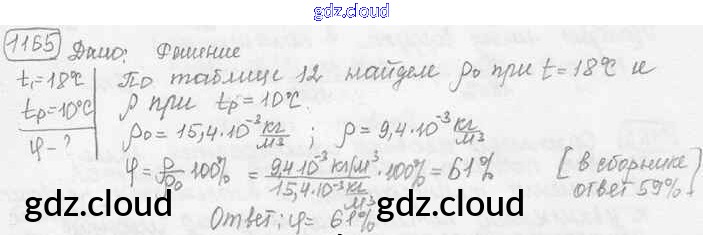 Ответ на задание 1165 Сборник задач Физика за 7, 8, 9 (седьмой, восьмой, девятый) класс Лукашик, Иванова 2011