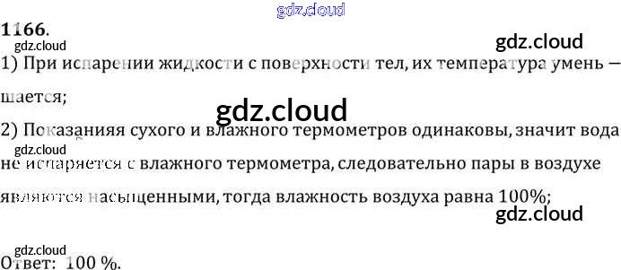 Ответ на задание 1166 Сборник задач Физика за 7, 8, 9 (седьмой, восьмой, девятый) класс Лукашик, Иванова 2011