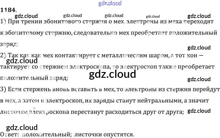 Ответ на задание 1184 Сборник задач Физика за 7, 8, 9 (седьмой, восьмой, девятый) класс Лукашик, Иванова 2011