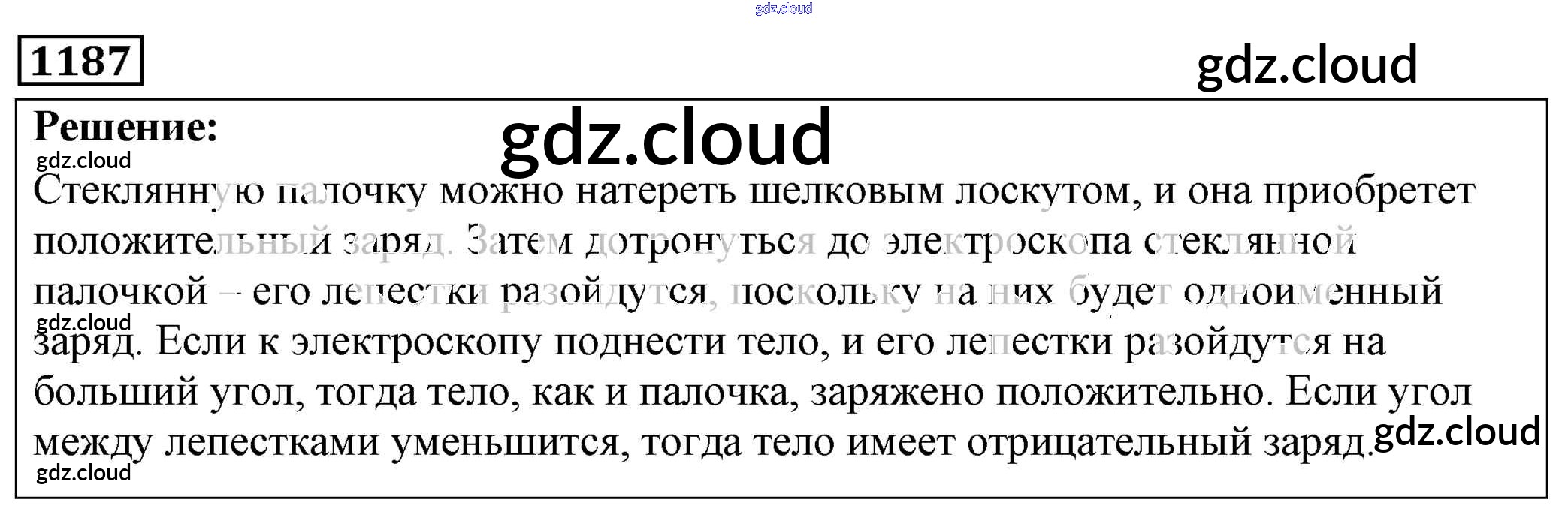 Ответ на задание 1187 Сборник задач Физика за 7, 8, 9 (седьмой, восьмой, девятый) класс Лукашик, Иванова 2011