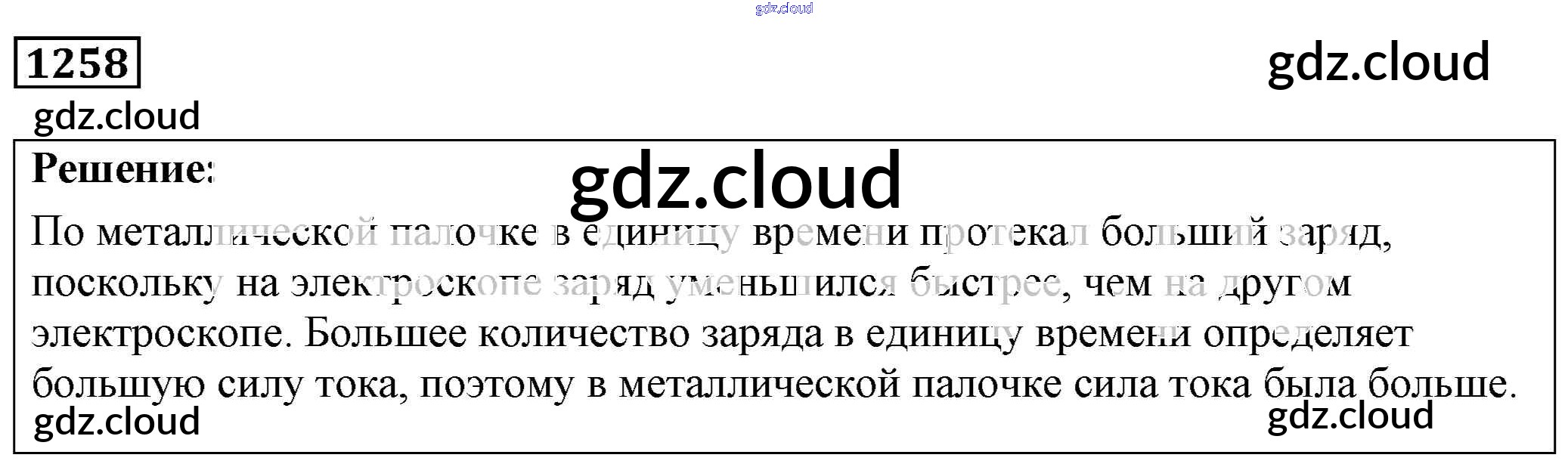 Ответ на задание 1258 Сборник задач Физика за 7, 8, 9 (седьмой, восьмой, девятый) класс Лукашик, Иванова 2011