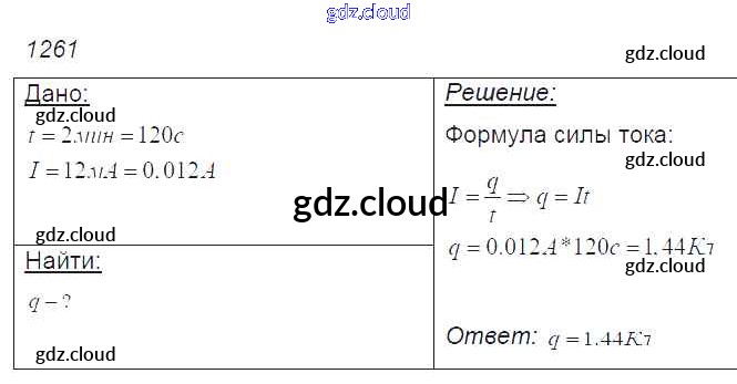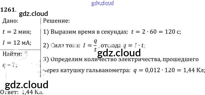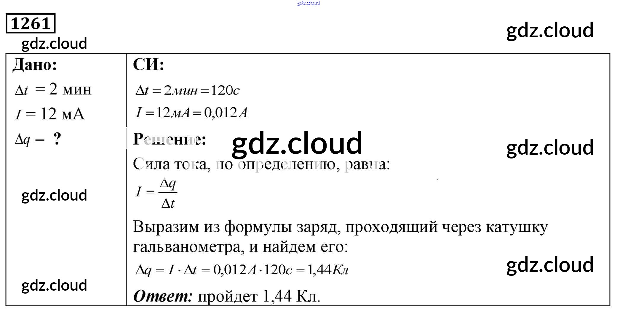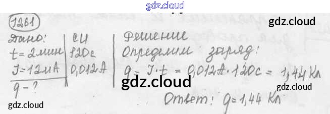 Ответ на задание 1261 Сборник задач Физика за 7, 8, 9 (седьмой, восьмой, девятый) класс Лукашик, Иванова 2011
