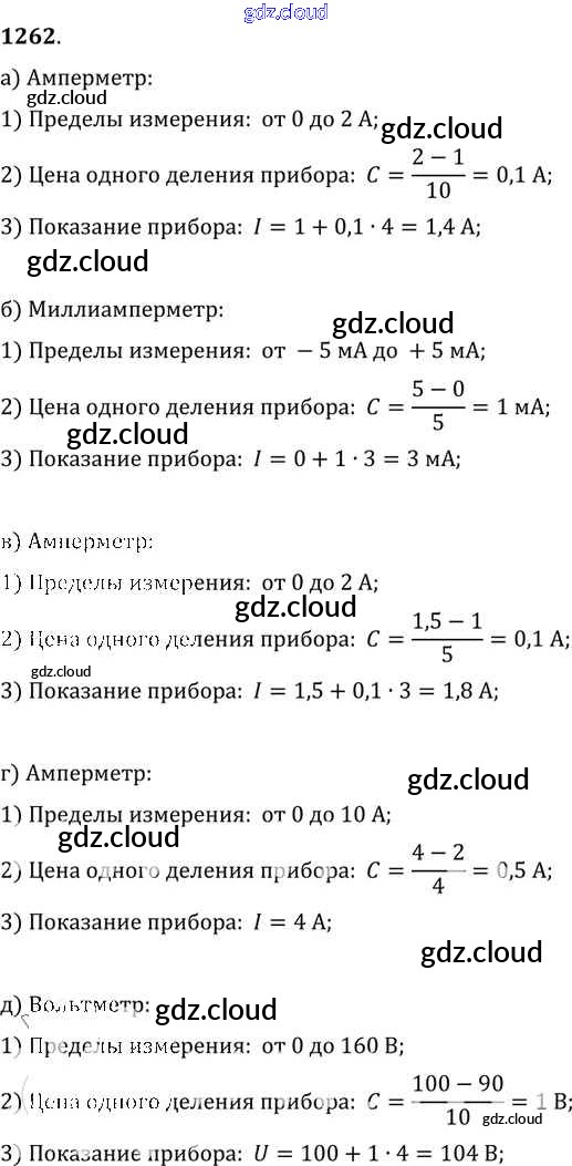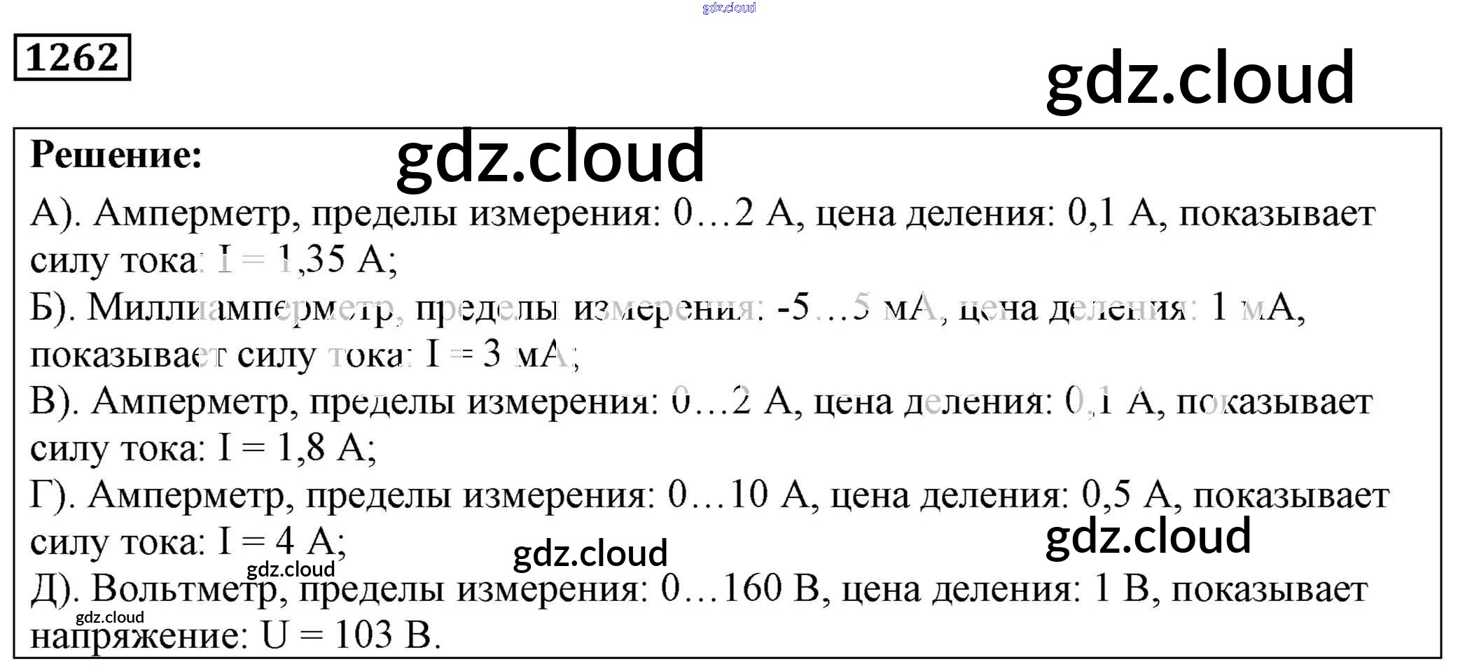 Ответ на задание 1262 Сборник задач Физика за 7, 8, 9 (седьмой, восьмой, девятый) класс Лукашик, Иванова 2011