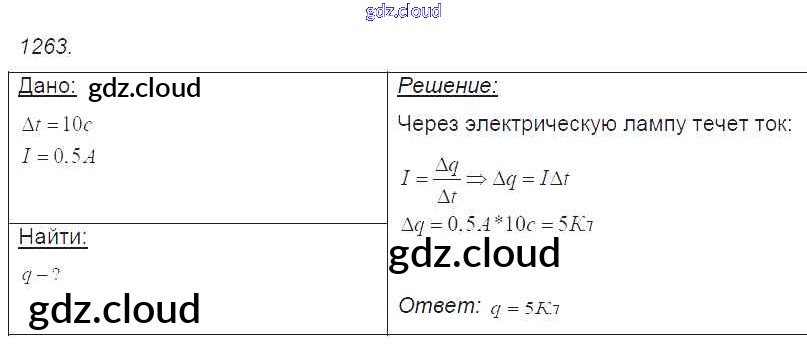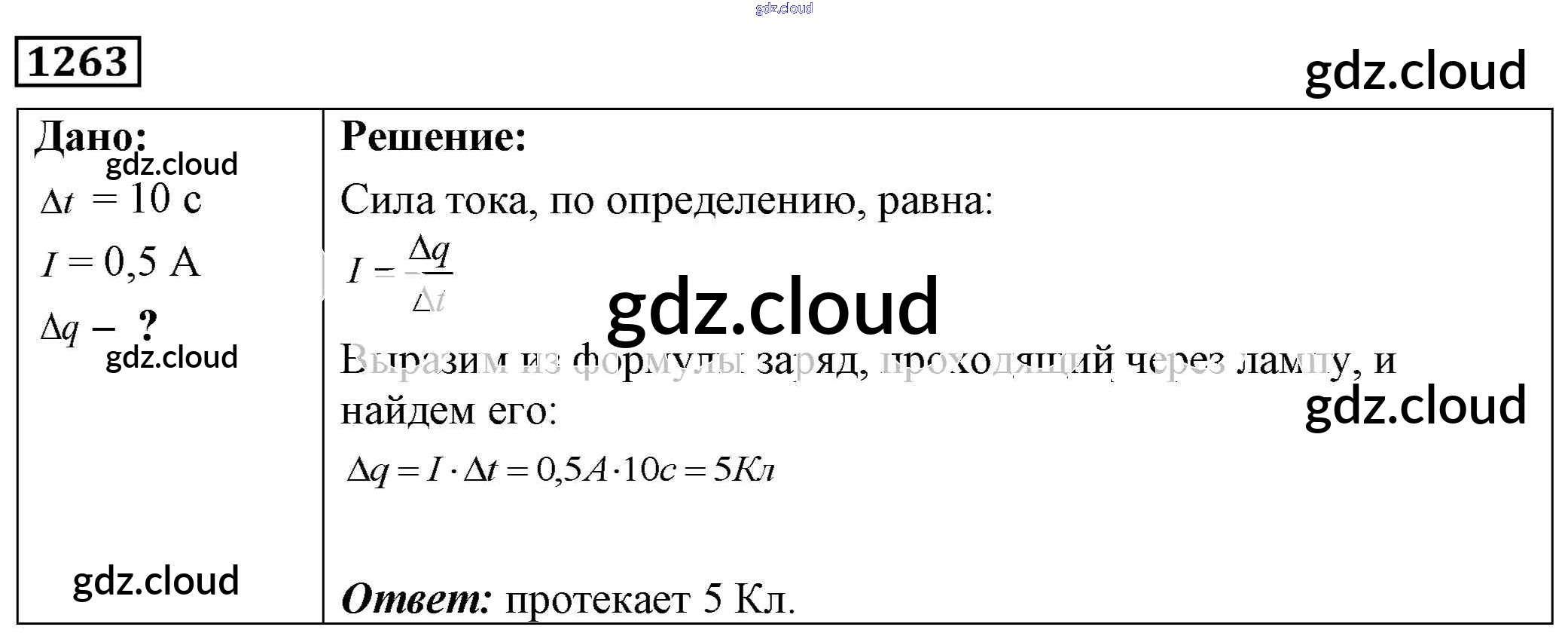 Ответ на задание 1263 Сборник задач Физика за 7, 8, 9 (седьмой, восьмой, девятый) класс Лукашик, Иванова 2011