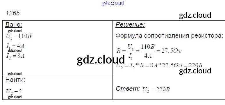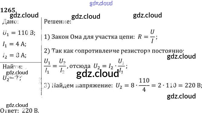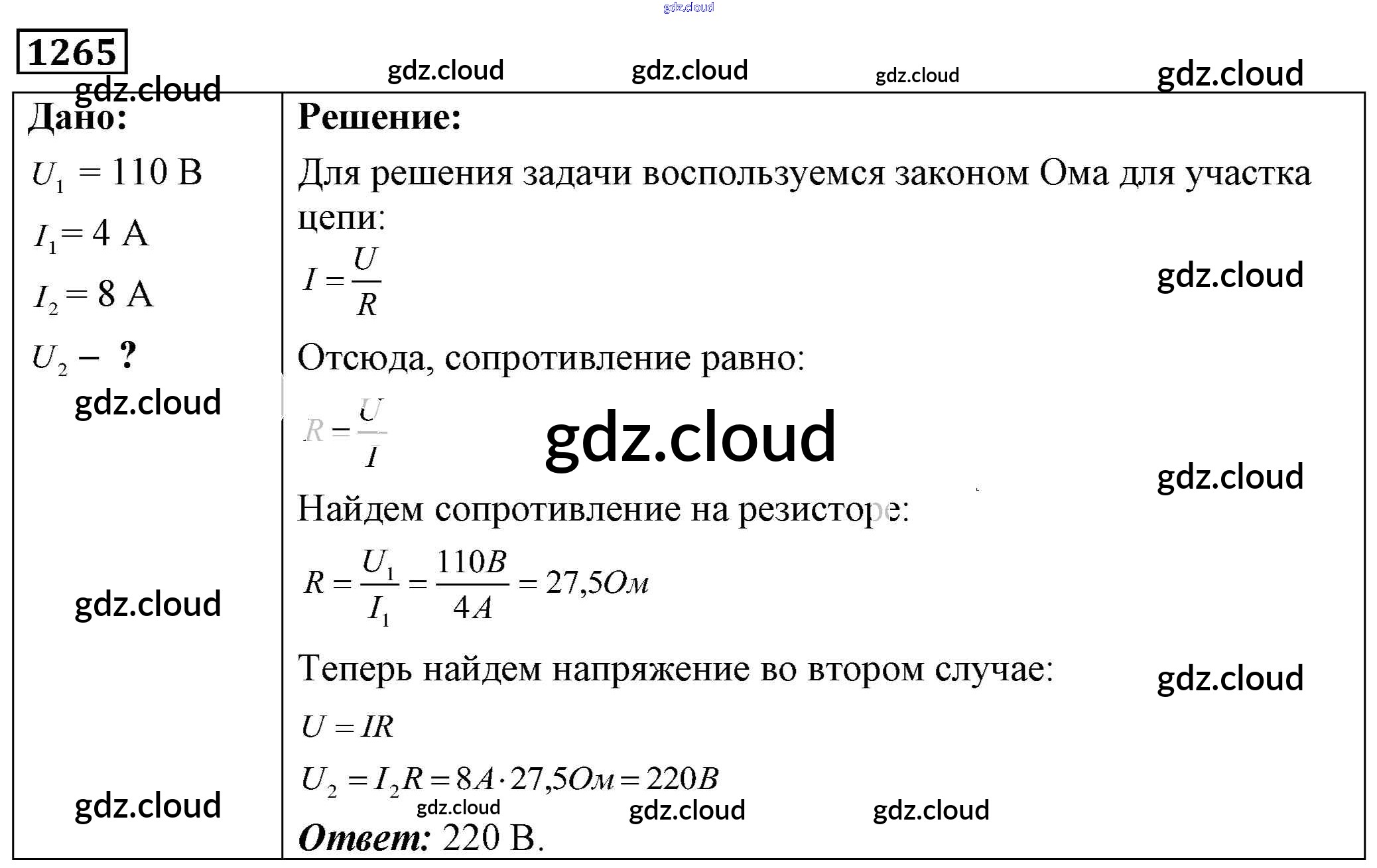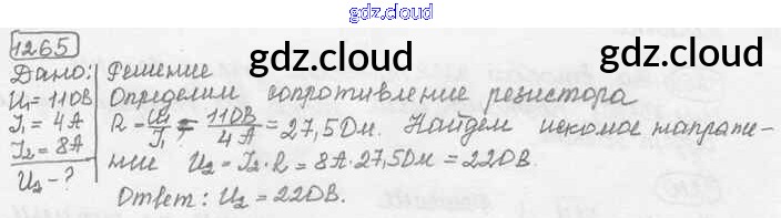 Ответ на задание 1265 Сборник задач Физика за 7, 8, 9 (седьмой, восьмой, девятый) класс Лукашик, Иванова 2011