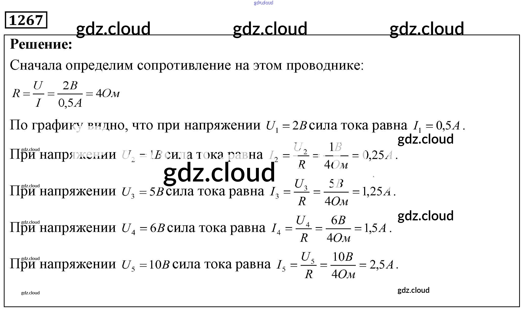 Ответ на задание 1267 Сборник задач Физика за 7, 8, 9 (седьмой, восьмой, девятый) класс Лукашик, Иванова 2011