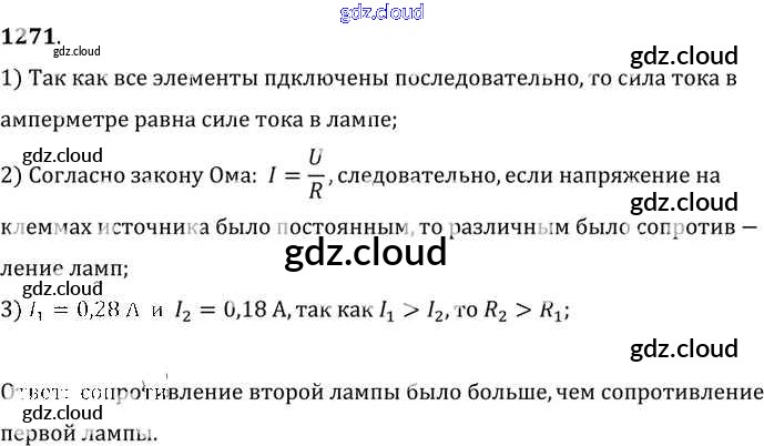 Ответ на задание 1271 Сборник задач Физика за 7, 8, 9 (седьмой, восьмой, девятый) класс Лукашик, Иванова 2011