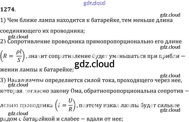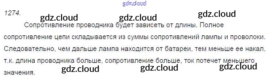 Ответ на задание 1274 Сборник задач Физика за 7, 8, 9 (седьмой, восьмой, девятый) класс Лукашик, Иванова 2011
