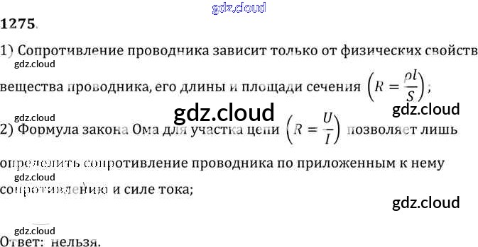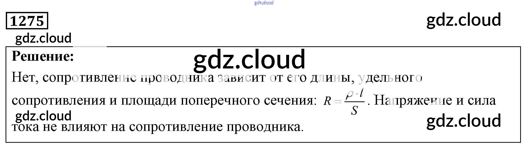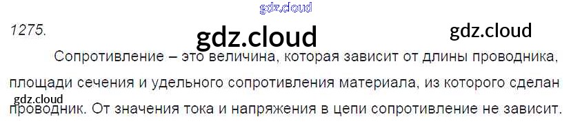 Ответ на задание 1275 Сборник задач Физика за 7, 8, 9 (седьмой, восьмой, девятый) класс Лукашик, Иванова 2011