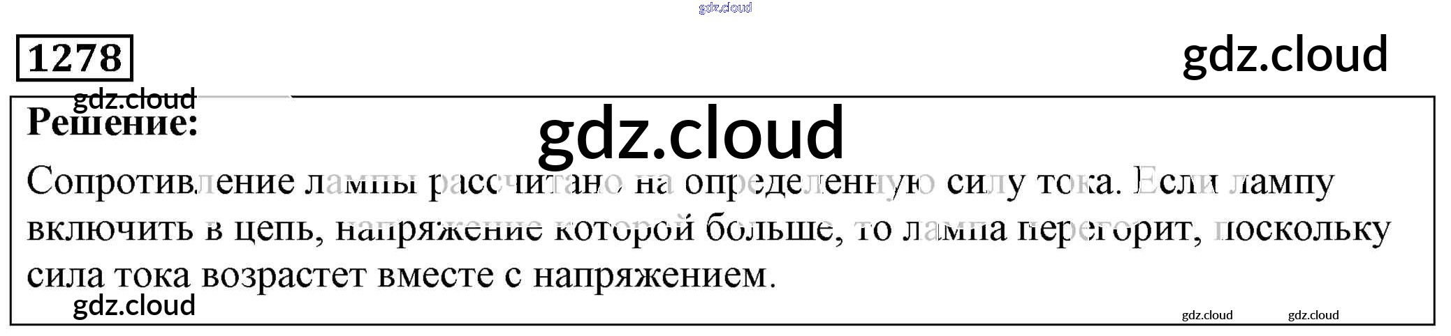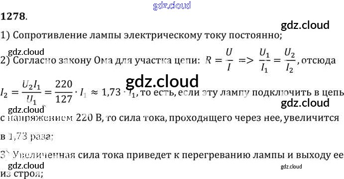 Ответ на задание 1278 Сборник задач Физика за 7, 8, 9 (седьмой, восьмой, девятый) класс Лукашик, Иванова 2011