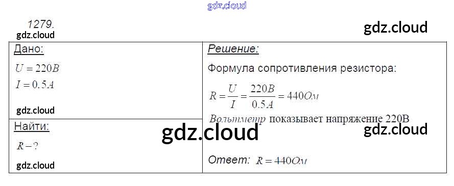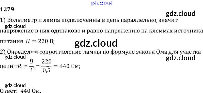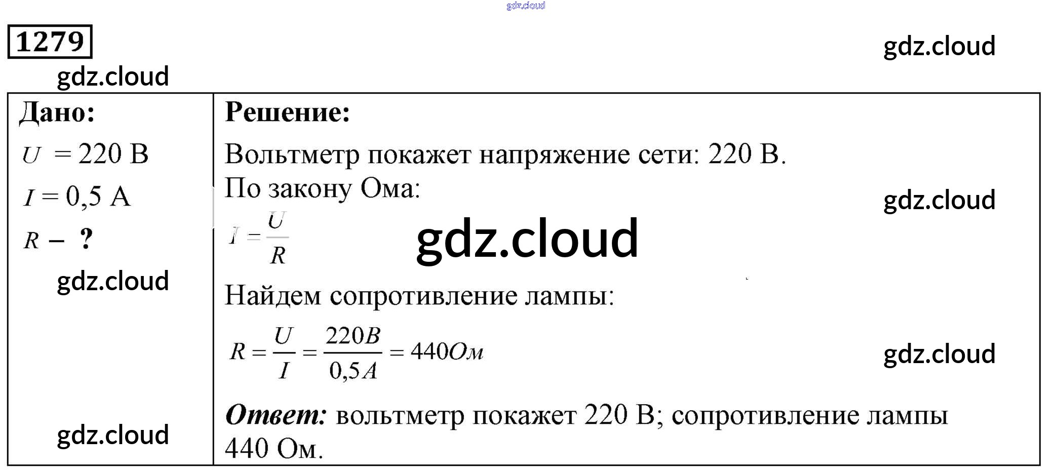 Ответ на задание 1279 Сборник задач Физика за 7, 8, 9 (седьмой, восьмой, девятый) класс Лукашик, Иванова 2011