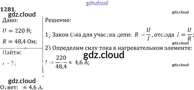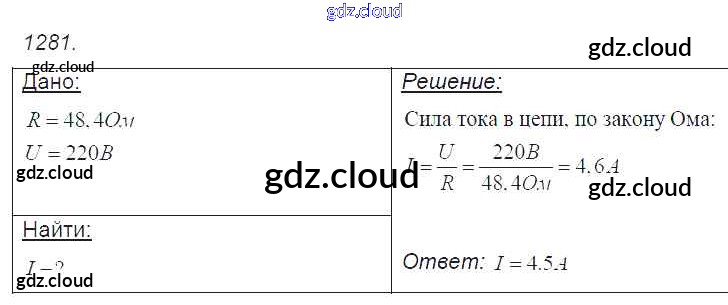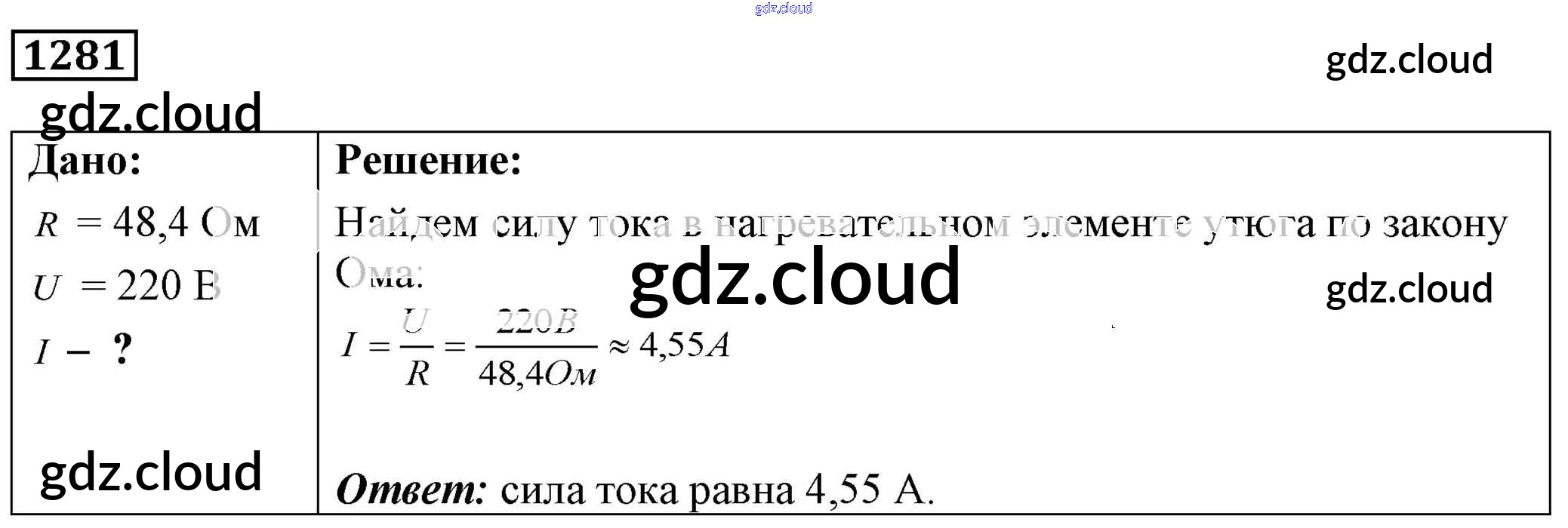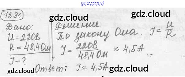Ответ на задание 1281 Сборник задач Физика за 7, 8, 9 (седьмой, восьмой, девятый) класс Лукашик, Иванова 2011