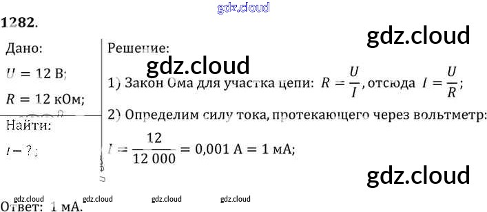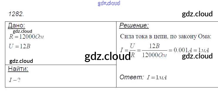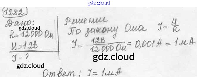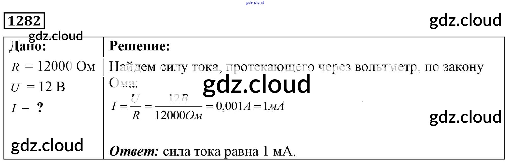 Ответ на задание 1282 Сборник задач Физика за 7, 8, 9 (седьмой, восьмой, девятый) класс Лукашик, Иванова 2011