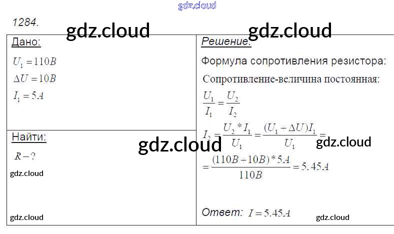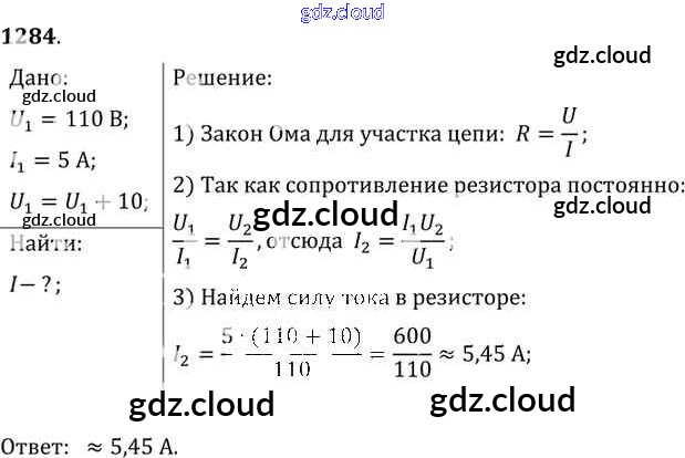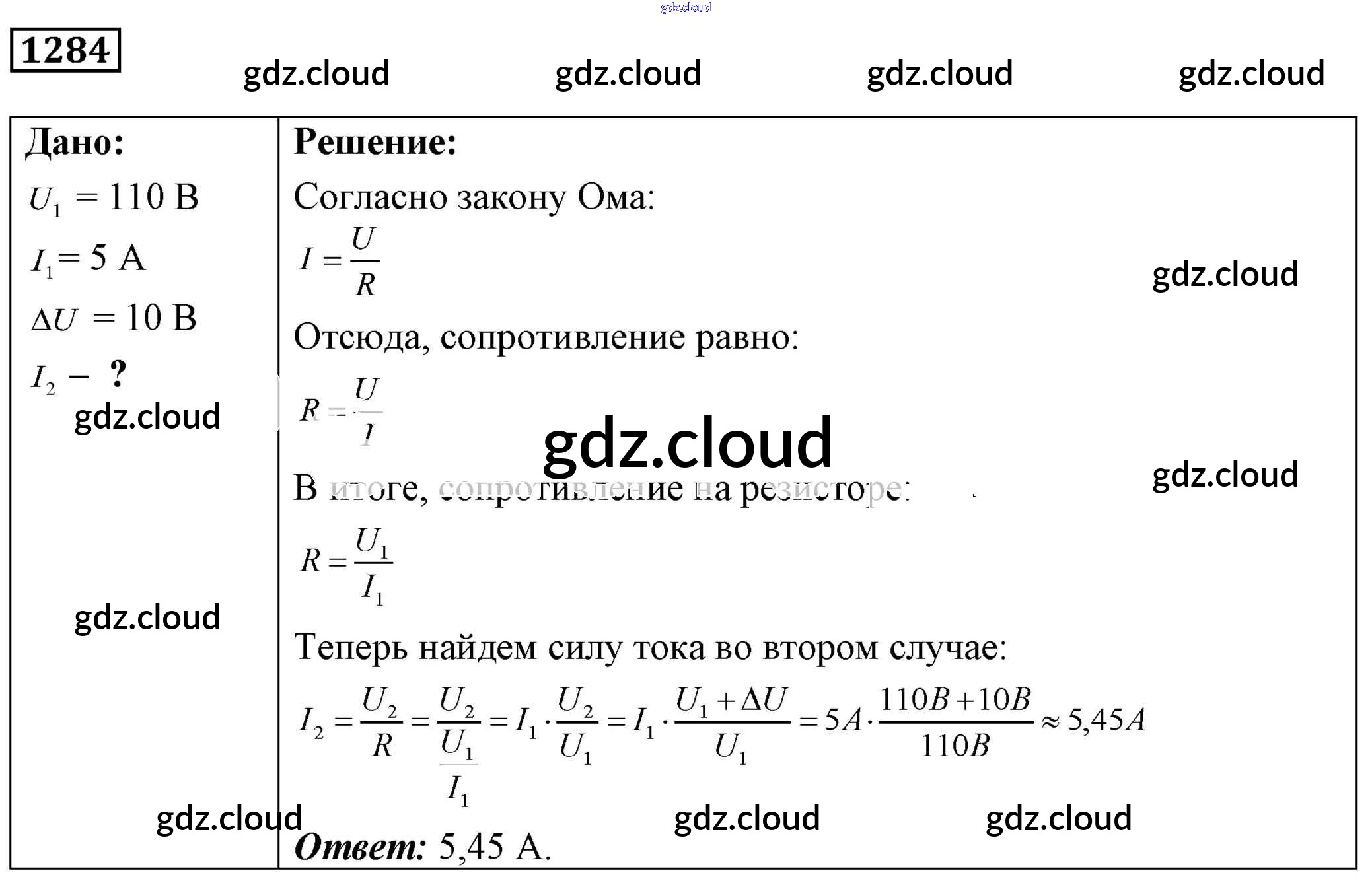 Ответ на задание 1284 Сборник задач Физика за 7, 8, 9 (седьмой, восьмой, девятый) класс Лукашик, Иванова 2011