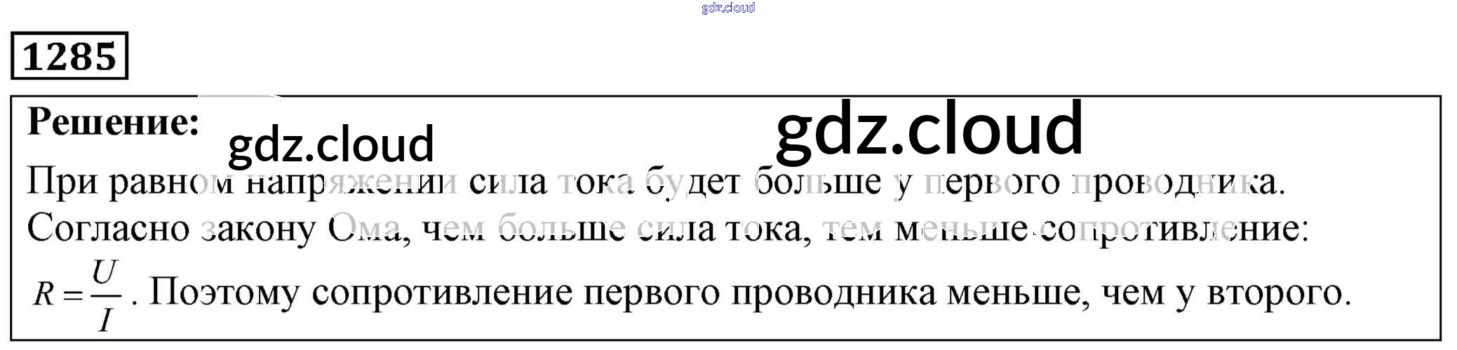 Ответ на задание 1285 Сборник задач Физика за 7, 8, 9 (седьмой, восьмой, девятый) класс Лукашик, Иванова 2011