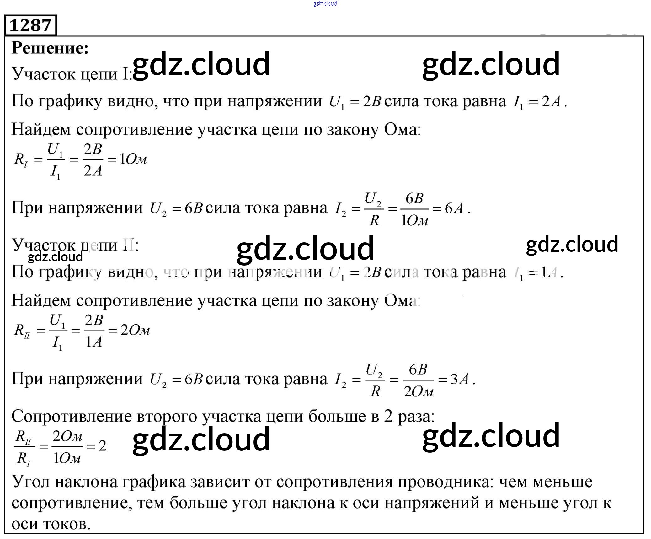Ответ на задание 1287 Сборник задач Физика за 7, 8, 9 (седьмой, восьмой, девятый) класс Лукашик, Иванова 2011