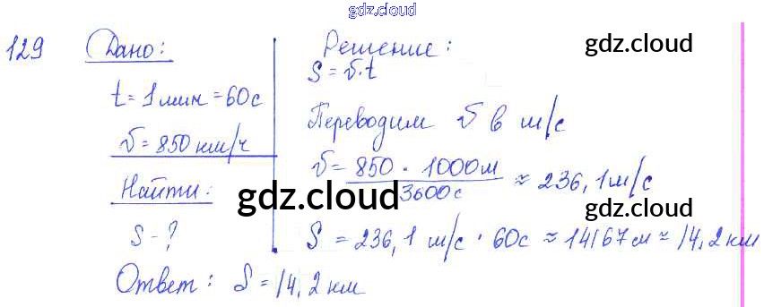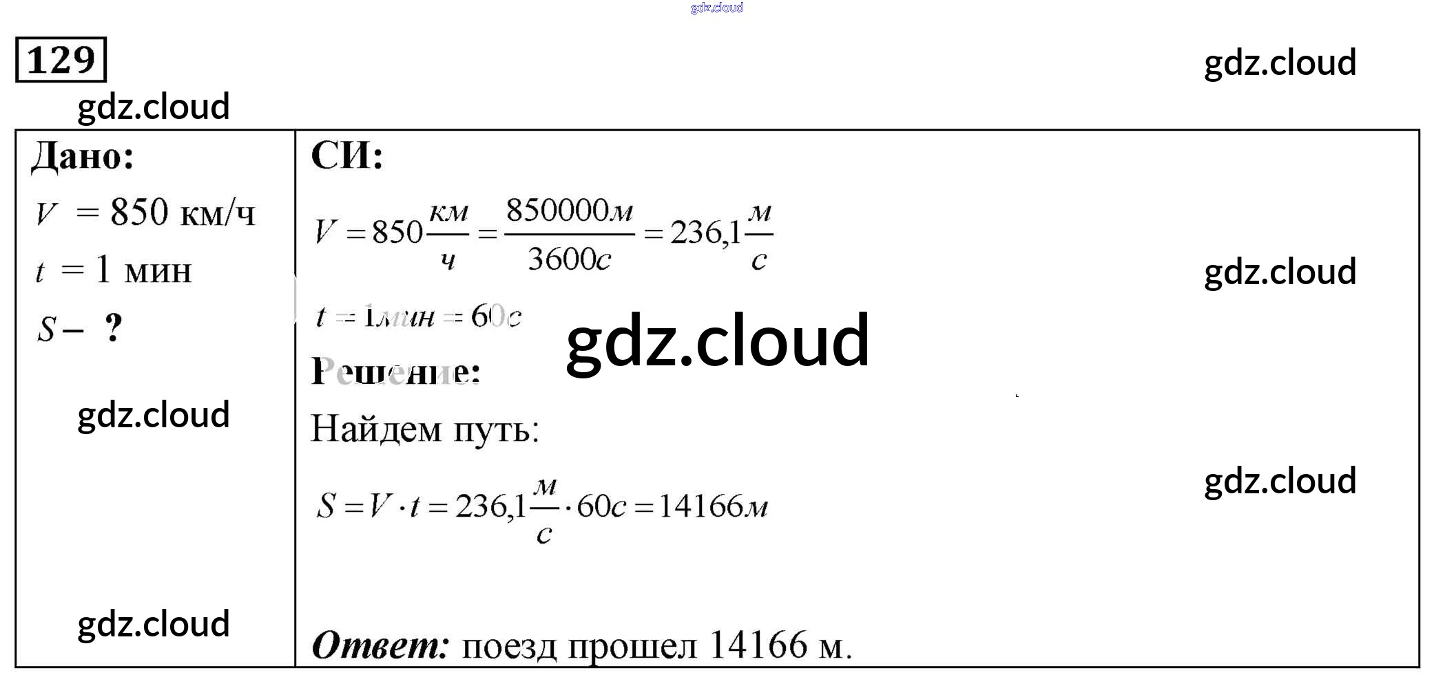 Ответ на задание 129 Сборник задач Физика за 7, 8, 9 (седьмой, восьмой, девятый) класс Лукашик, Иванова 2011