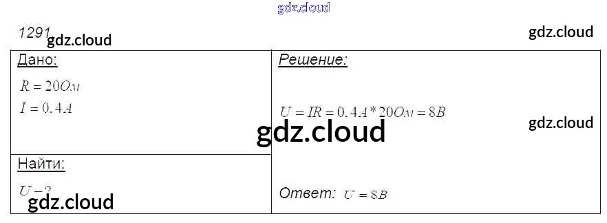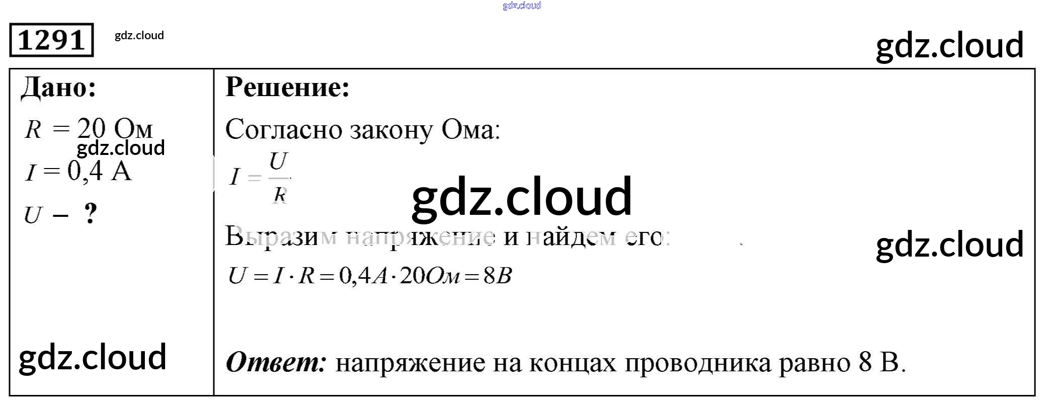 Ответ на задание 1291 Сборник задач Физика за 7, 8, 9 (седьмой, восьмой, девятый) класс Лукашик, Иванова 2011