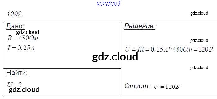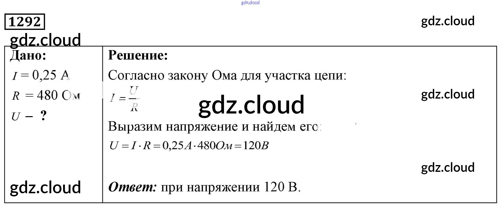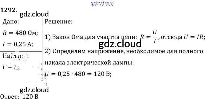 Ответ на задание 1292 Сборник задач Физика за 7, 8, 9 (седьмой, восьмой, девятый) класс Лукашик, Иванова 2011