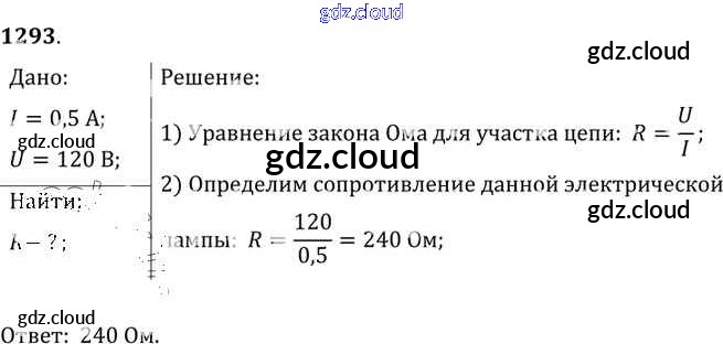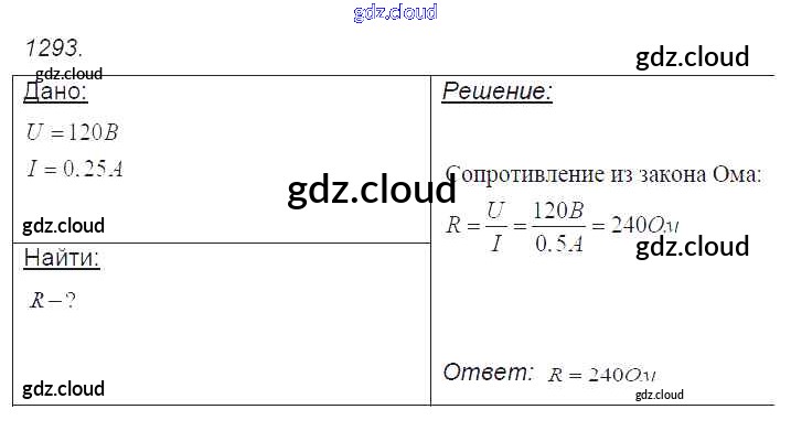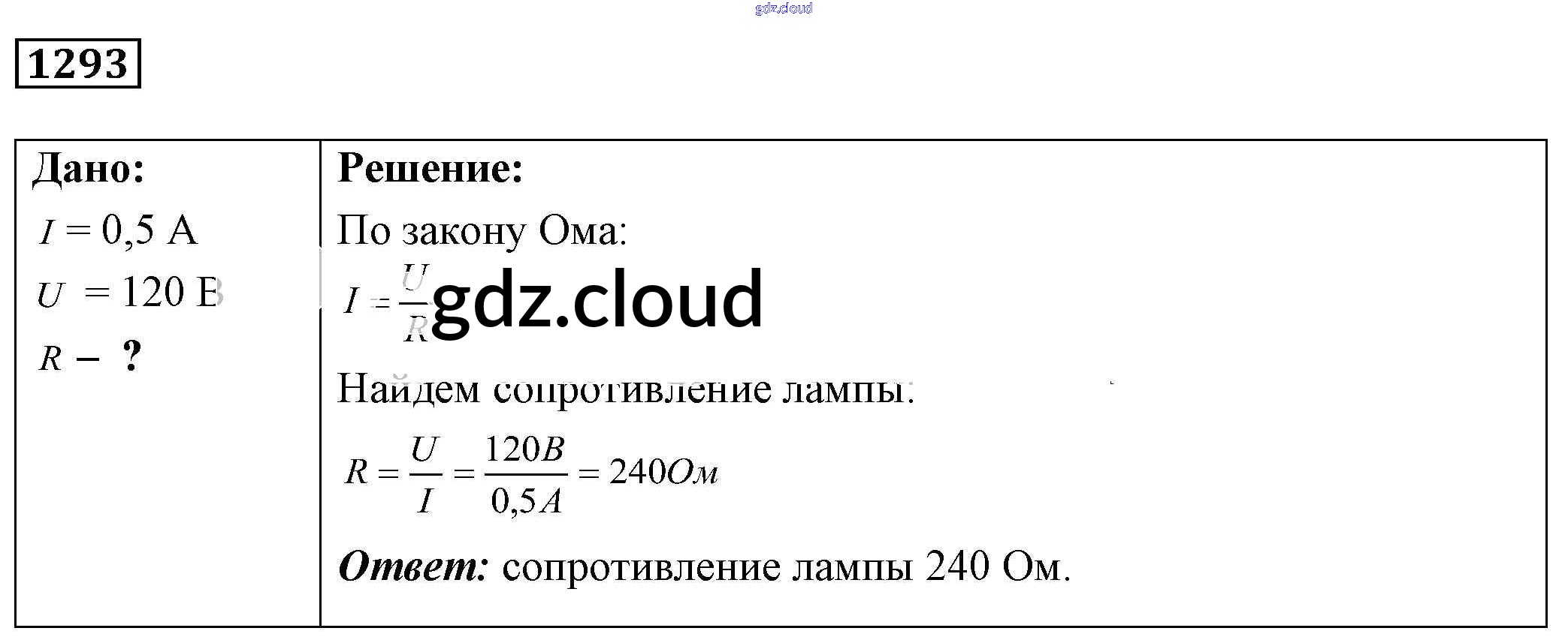Ответ на задание 1293 Сборник задач Физика за 7, 8, 9 (седьмой, восьмой, девятый) класс Лукашик, Иванова 2011