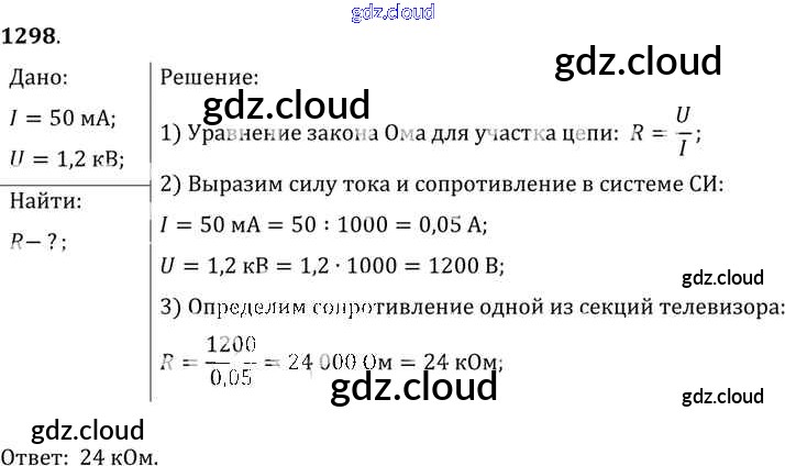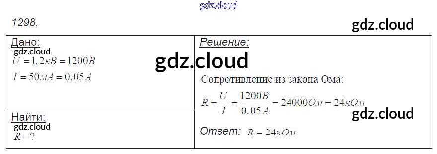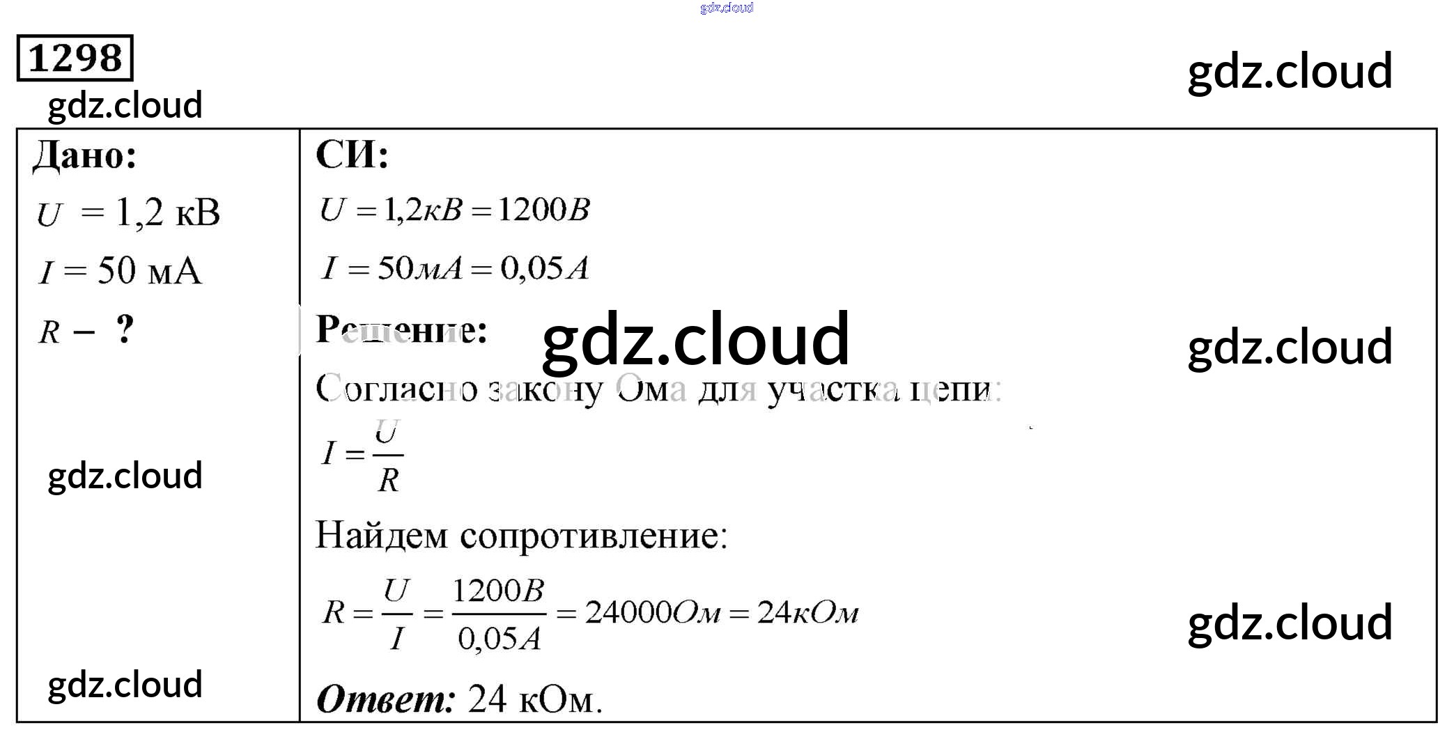 Ответ на задание 1298 Сборник задач Физика за 7, 8, 9 (седьмой, восьмой, девятый) класс Лукашик, Иванова 2011