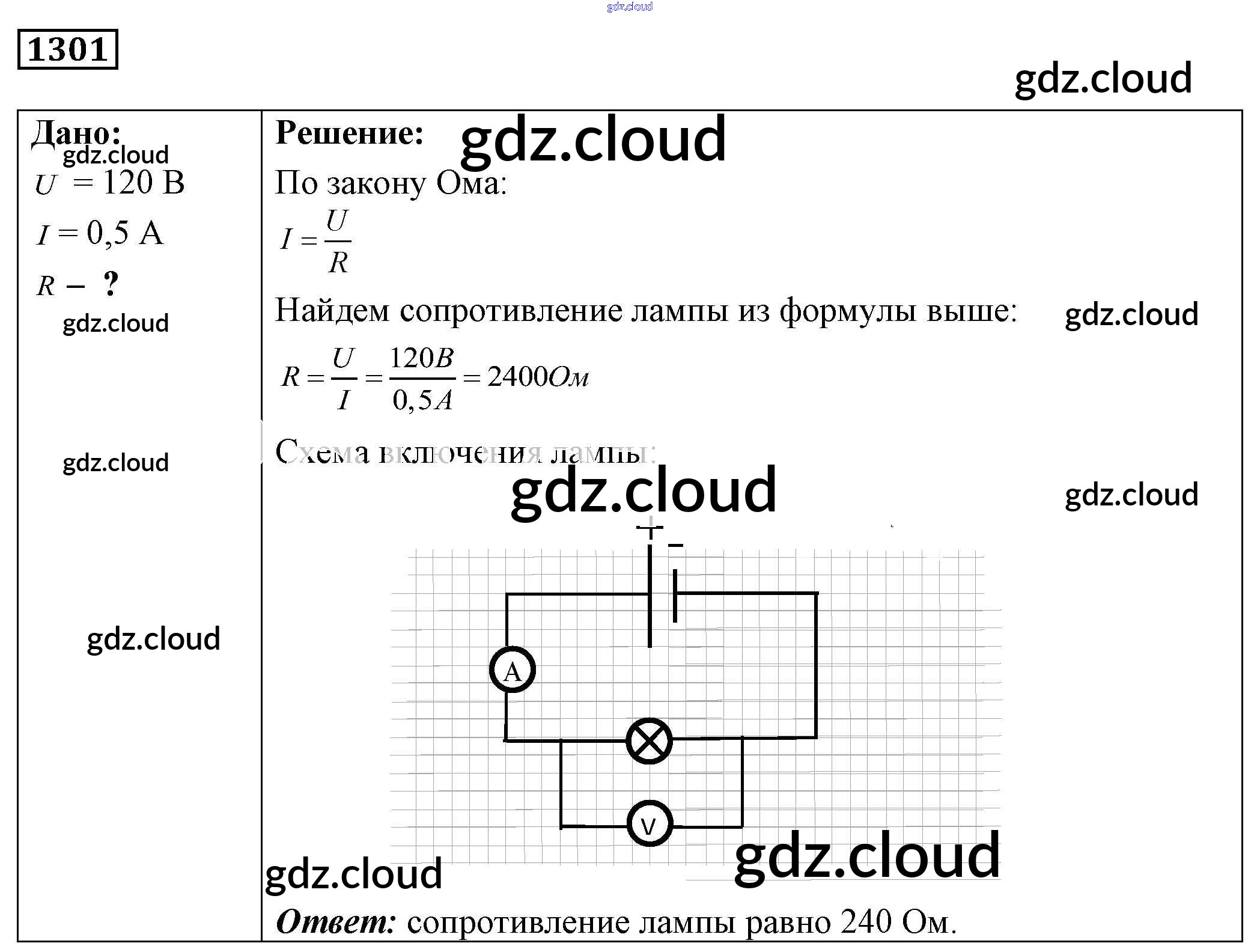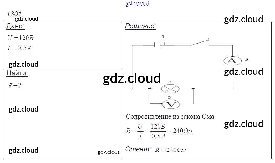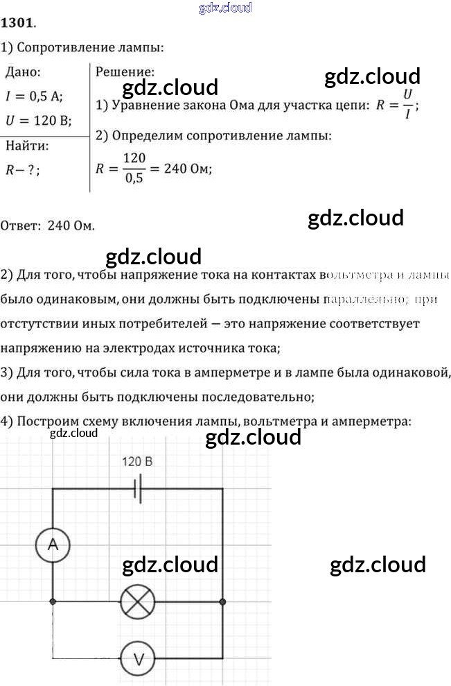 Ответ на задание 1301 Сборник задач Физика за 7, 8, 9 (седьмой, восьмой, девятый) класс Лукашик, Иванова 2011