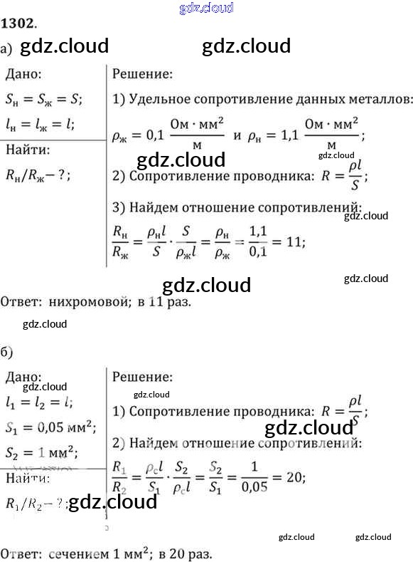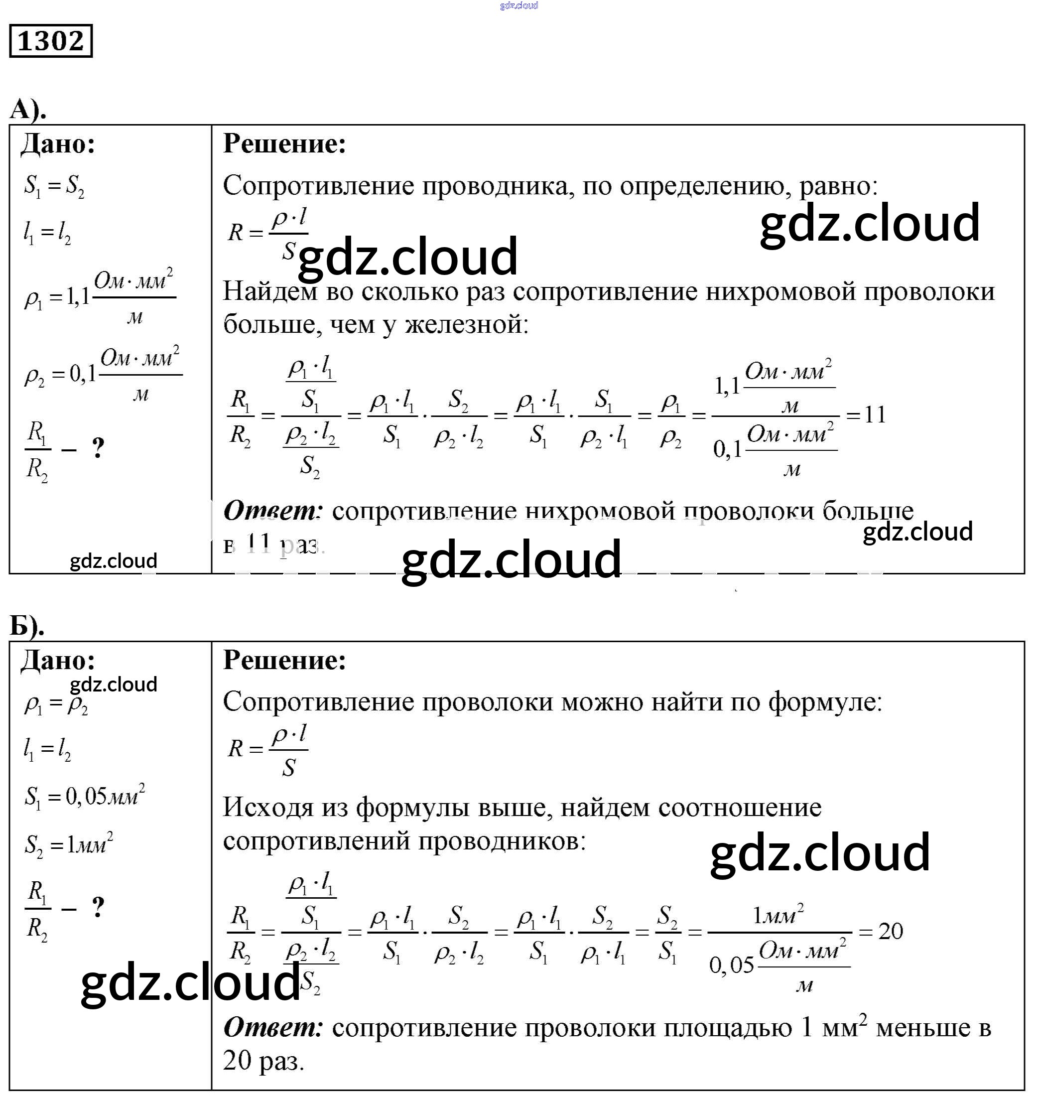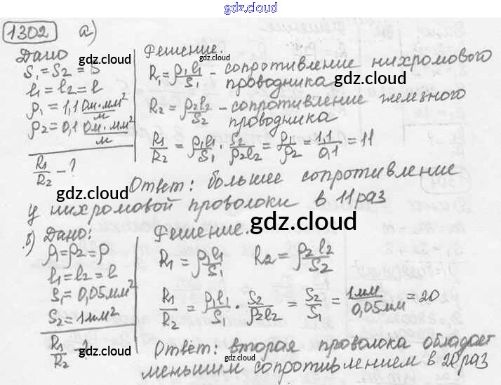 Ответ на задание 1302 Сборник задач Физика за 7, 8, 9 (седьмой, восьмой, девятый) класс Лукашик, Иванова 2011