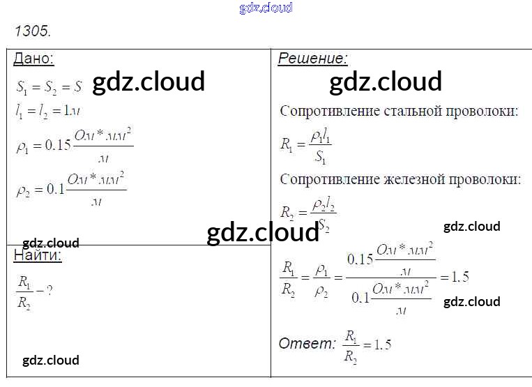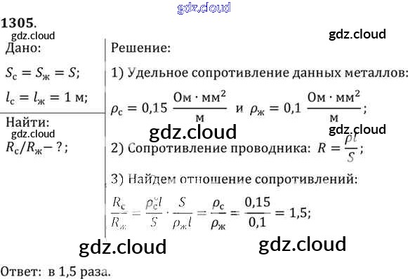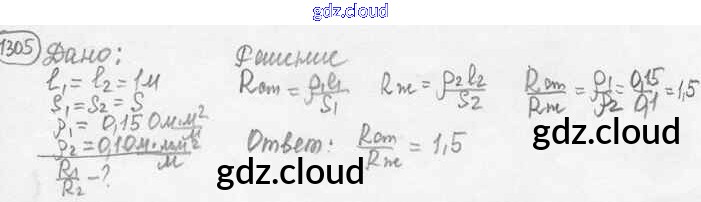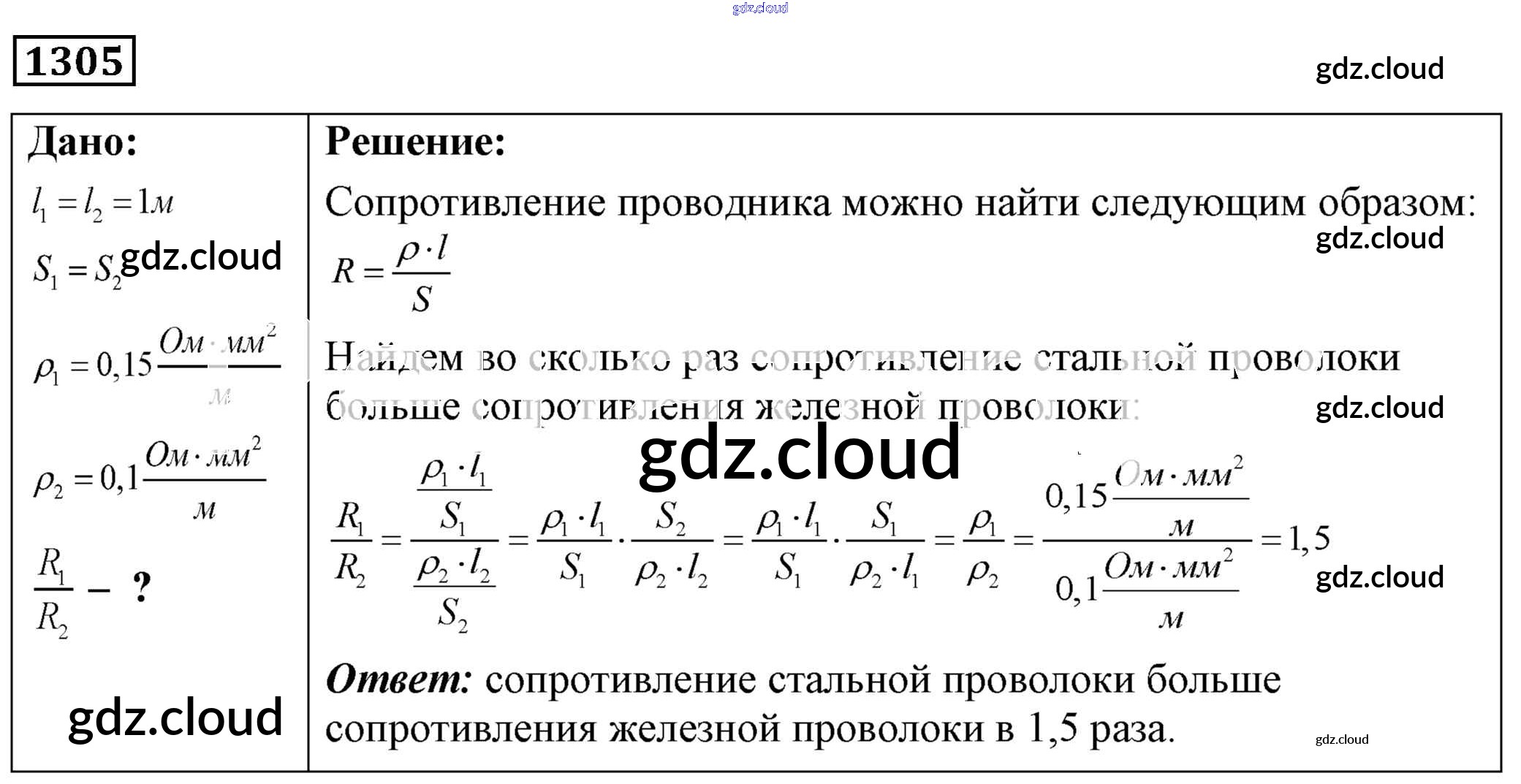 Ответ на задание 1305 Сборник задач Физика за 7, 8, 9 (седьмой, восьмой, девятый) класс Лукашик, Иванова 2011