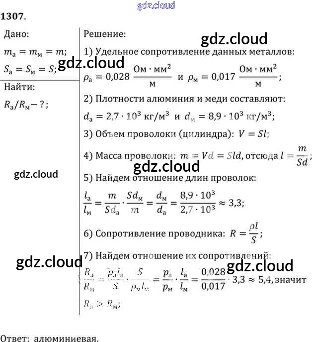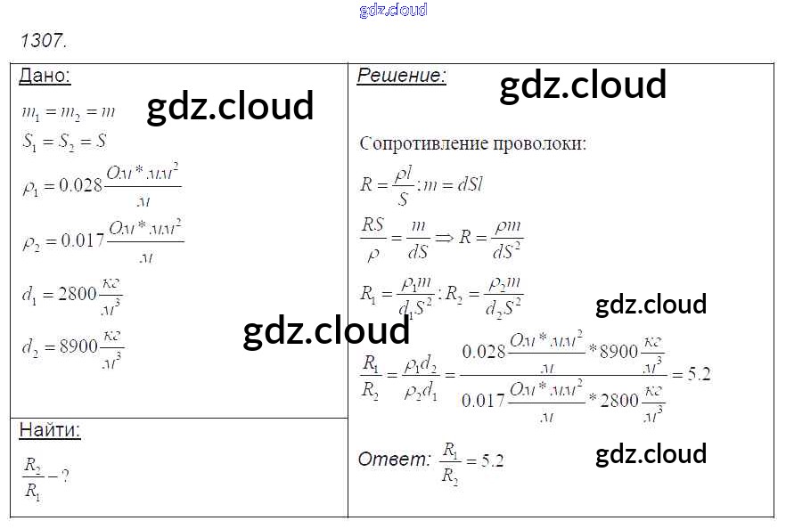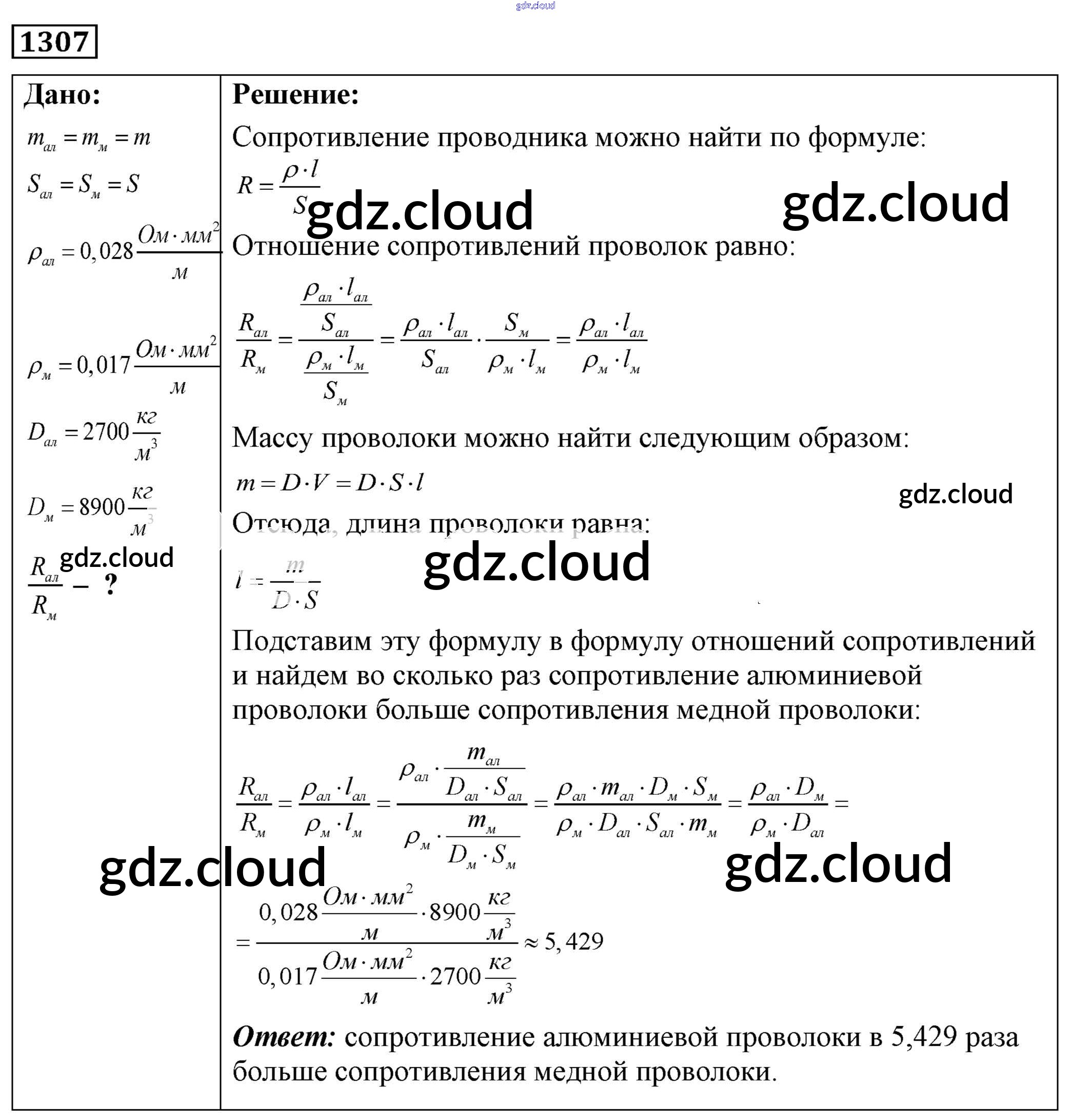 Ответ на задание 1307 Сборник задач Физика за 7, 8, 9 (седьмой, восьмой, девятый) класс Лукашик, Иванова 2011