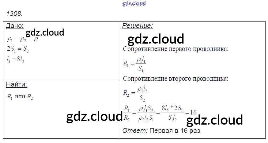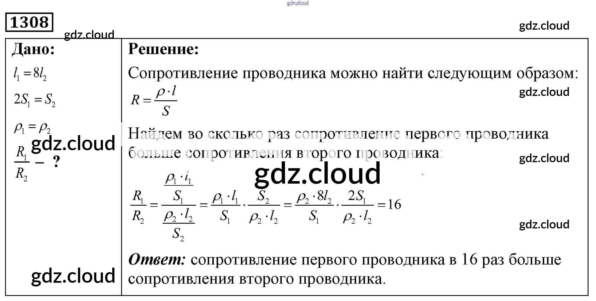 Ответ на задание 1308 Сборник задач Физика за 7, 8, 9 (седьмой, восьмой, девятый) класс Лукашик, Иванова 2011