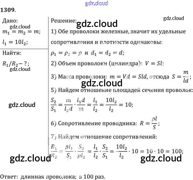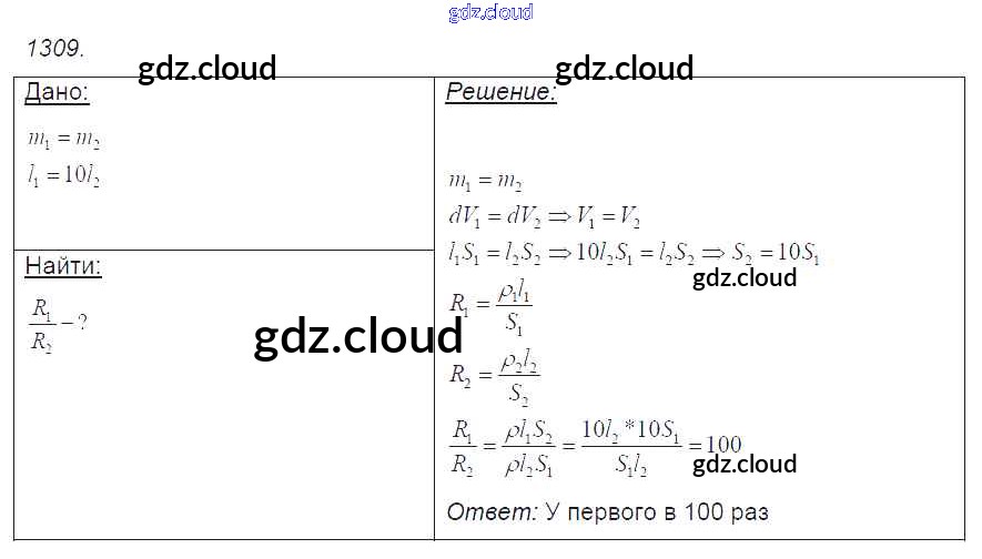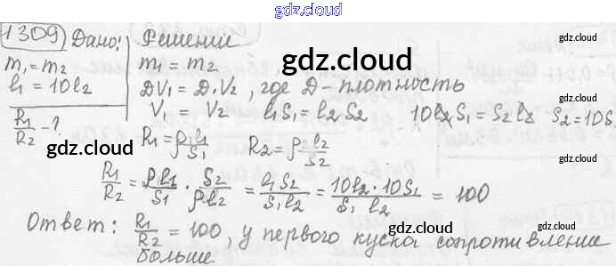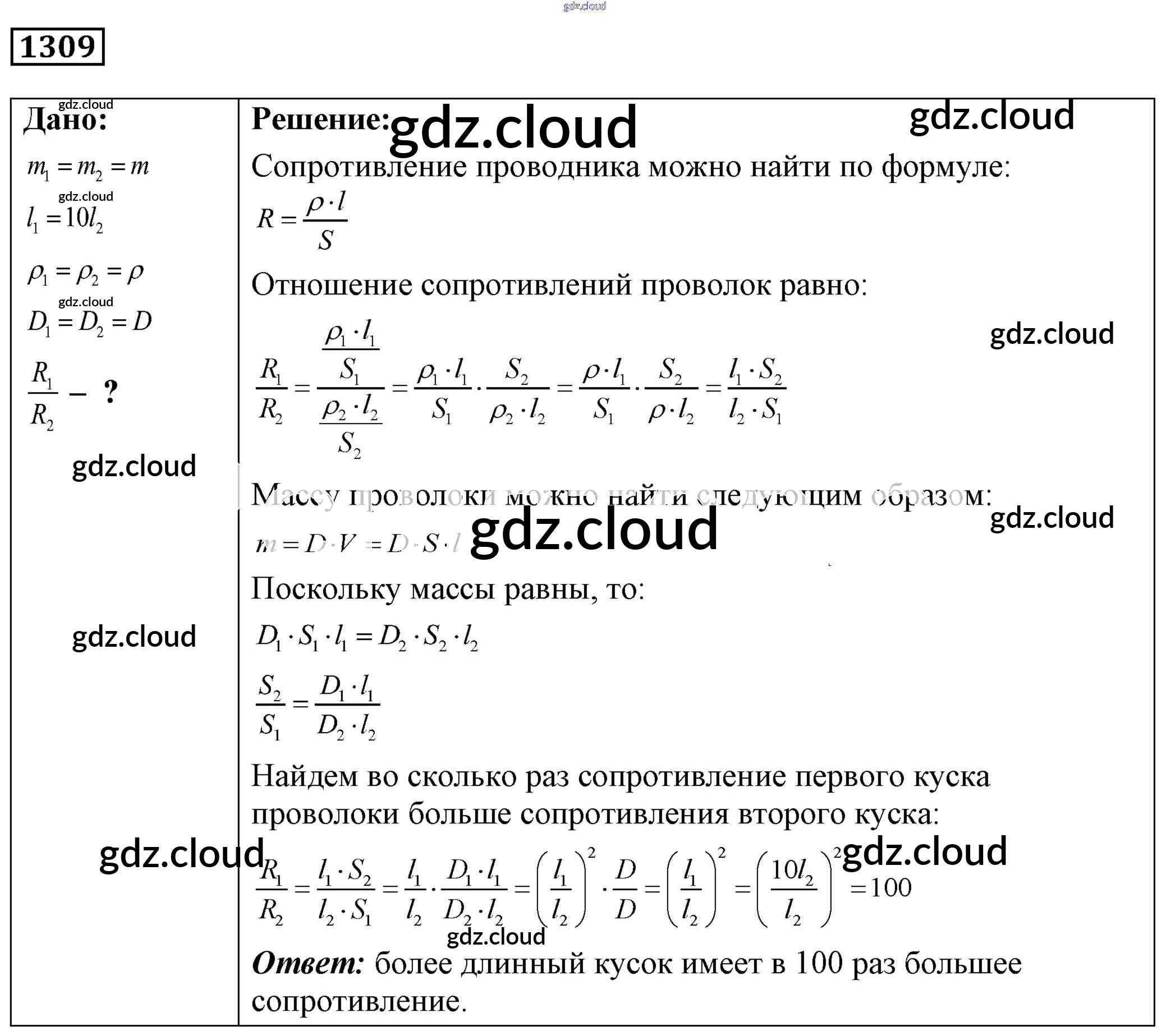 Ответ на задание 1309 Сборник задач Физика за 7, 8, 9 (седьмой, восьмой, девятый) класс Лукашик, Иванова 2011