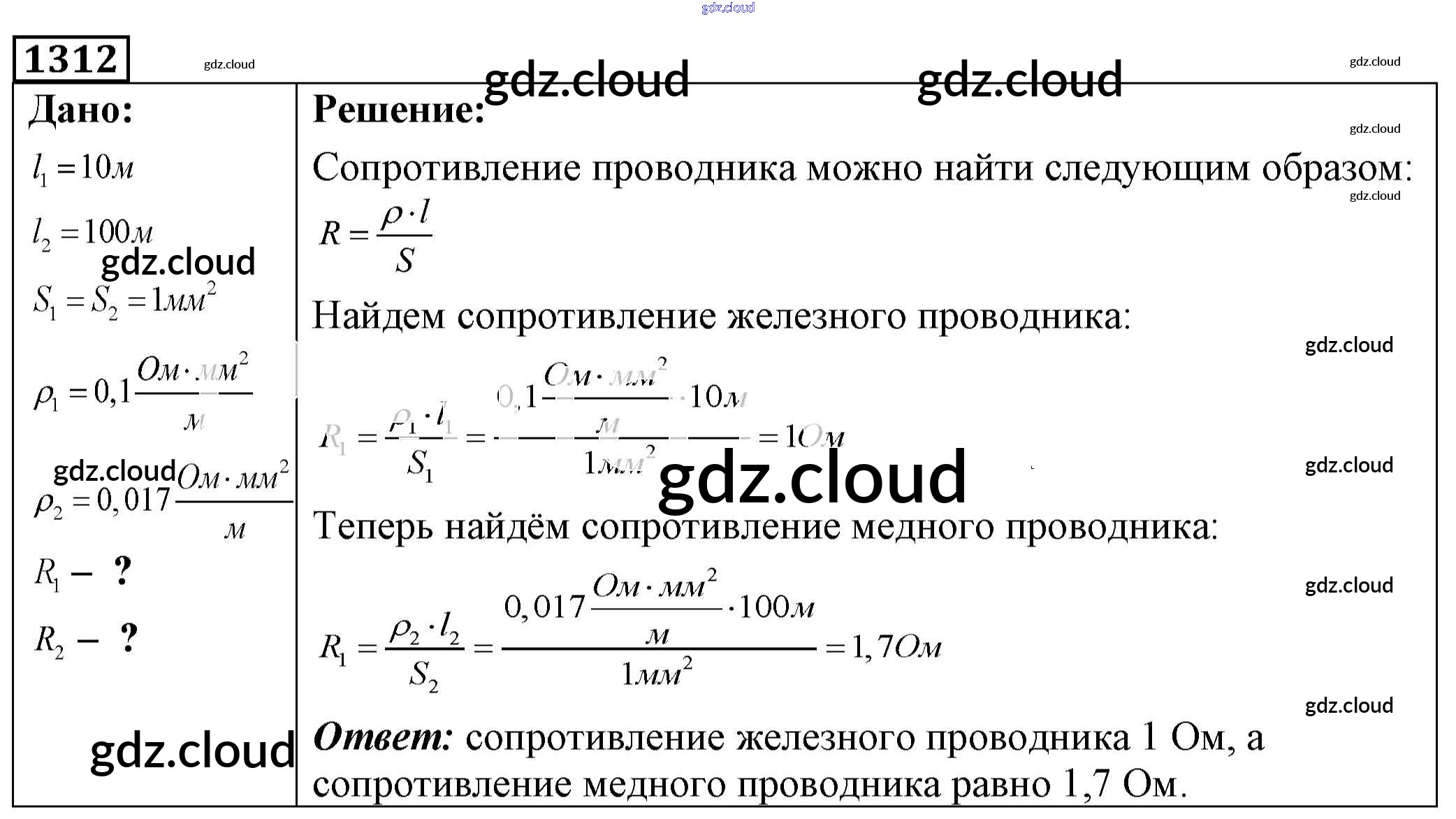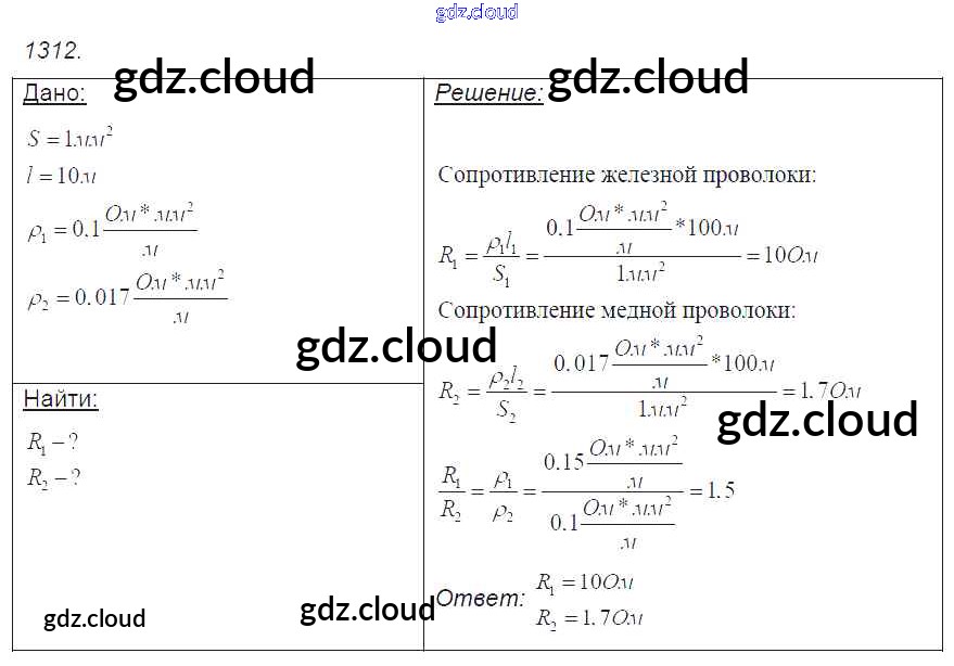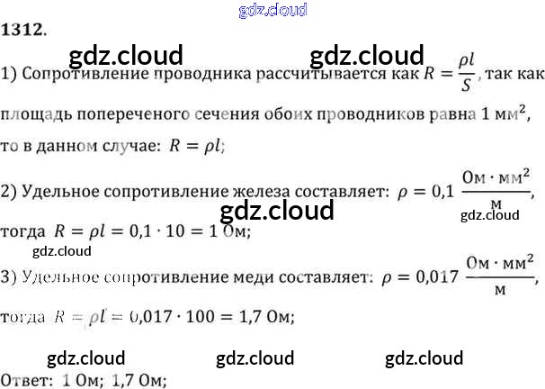 Ответ на задание 1312 Сборник задач Физика за 7, 8, 9 (седьмой, восьмой, девятый) класс Лукашик, Иванова 2011