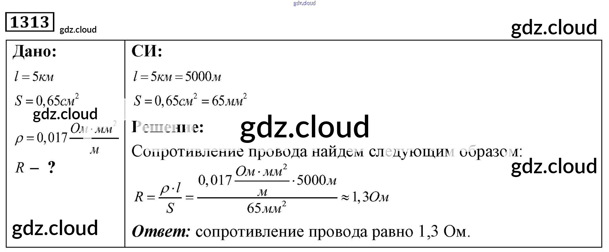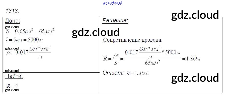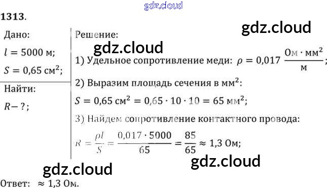 Ответ на задание 1313 Сборник задач Физика за 7, 8, 9 (седьмой, восьмой, девятый) класс Лукашик, Иванова 2011