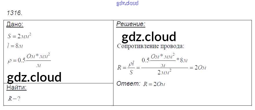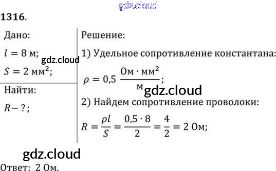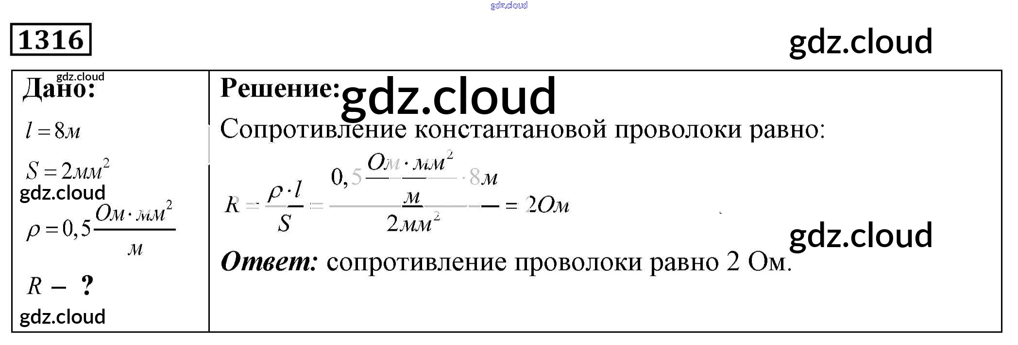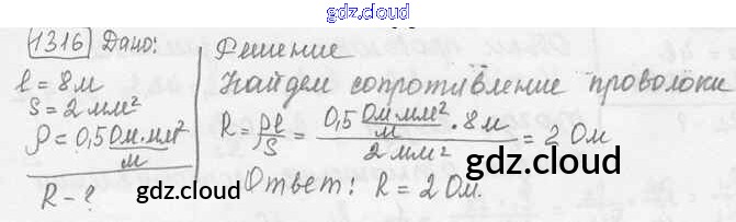 Ответ на задание 1316 Сборник задач Физика за 7, 8, 9 (седьмой, восьмой, девятый) класс Лукашик, Иванова 2011