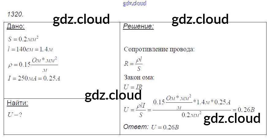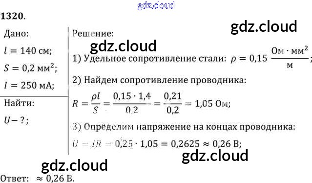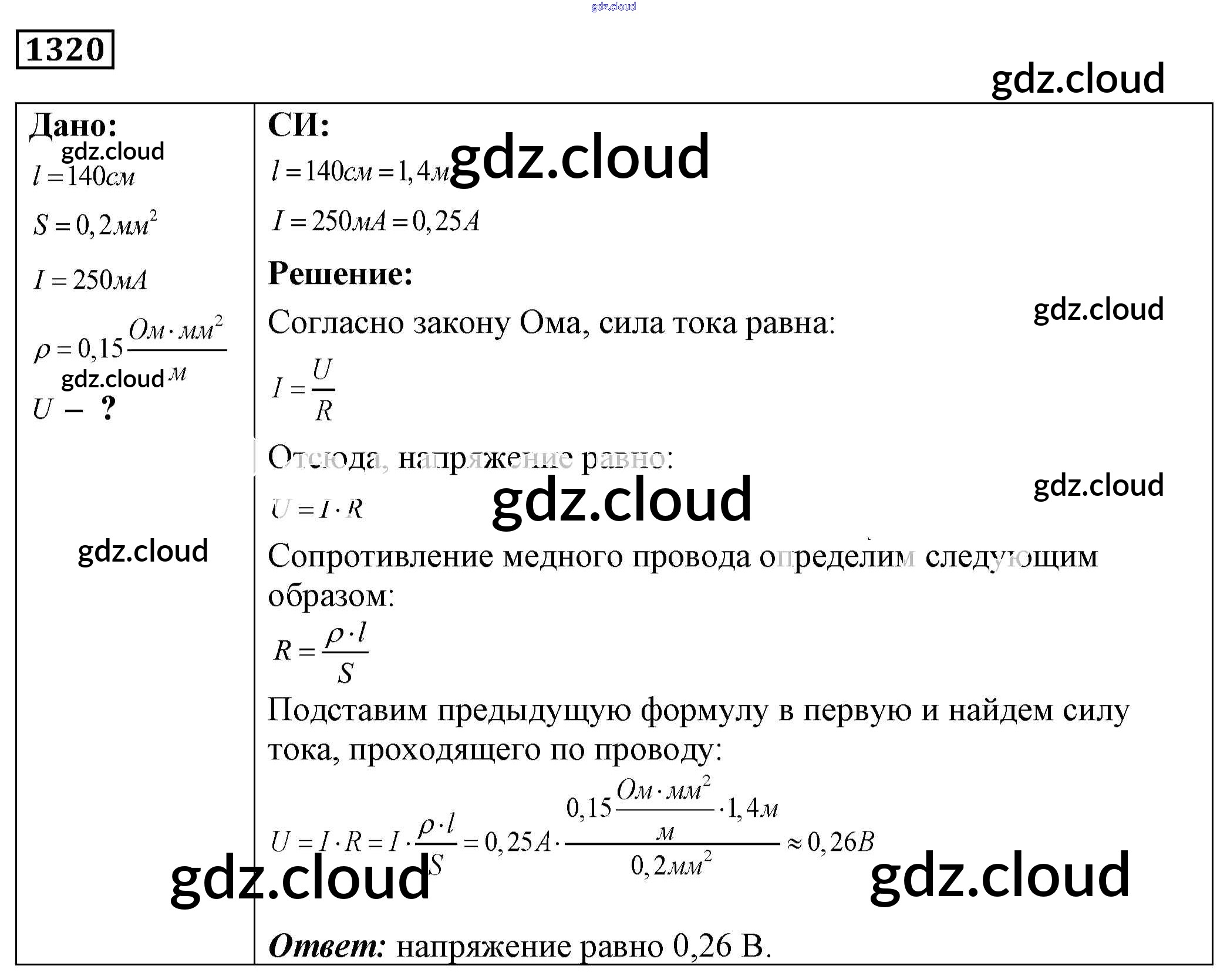 Ответ на задание 1320 Сборник задач Физика за 7, 8, 9 (седьмой, восьмой, девятый) класс Лукашик, Иванова 2011