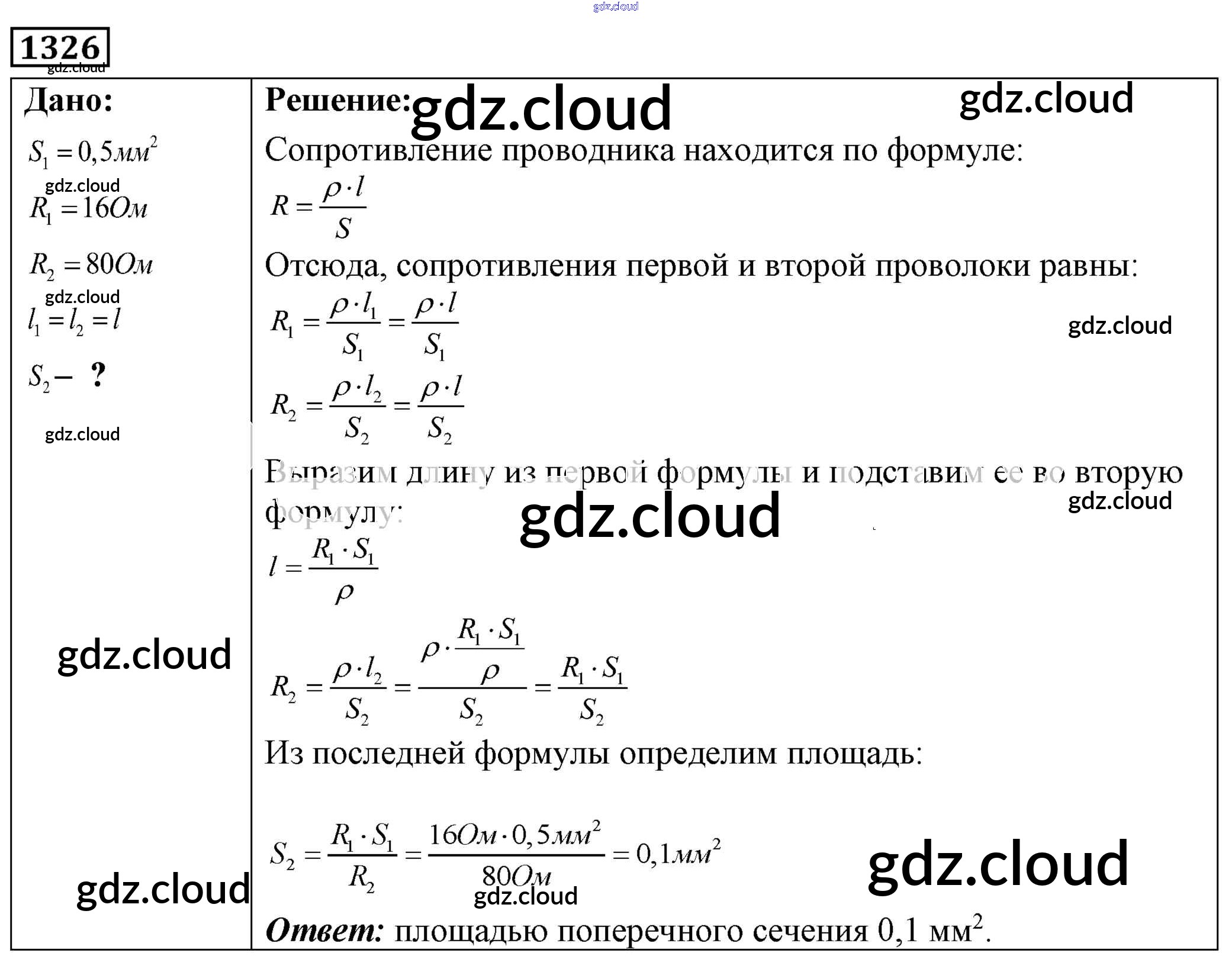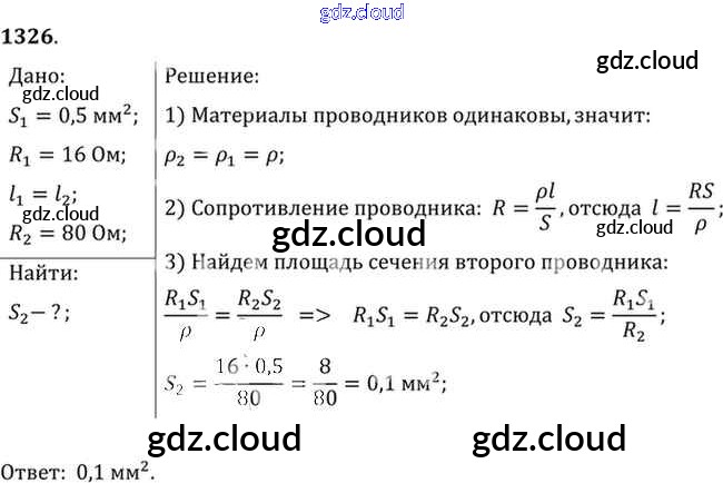 Ответ на задание 1326 Сборник задач Физика за 7, 8, 9 (седьмой, восьмой, девятый) класс Лукашик, Иванова 2011