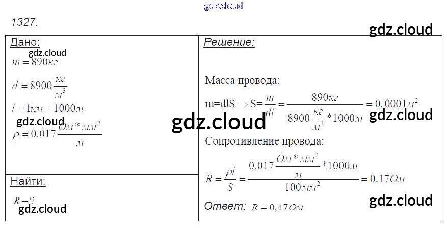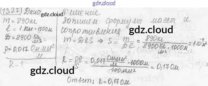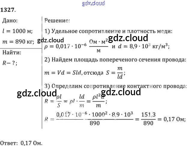 Ответ на задание 1327 Сборник задач Физика за 7, 8, 9 (седьмой, восьмой, девятый) класс Лукашик, Иванова 2011