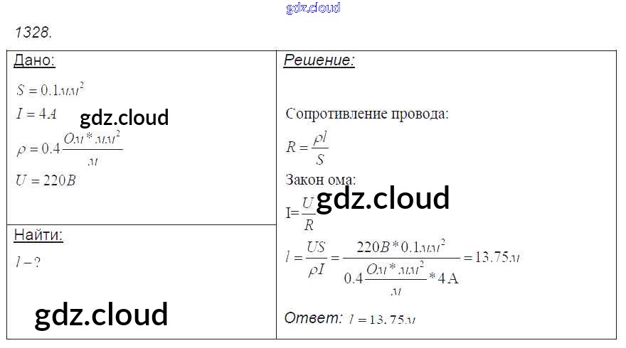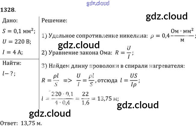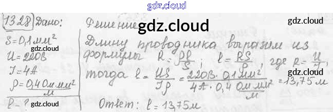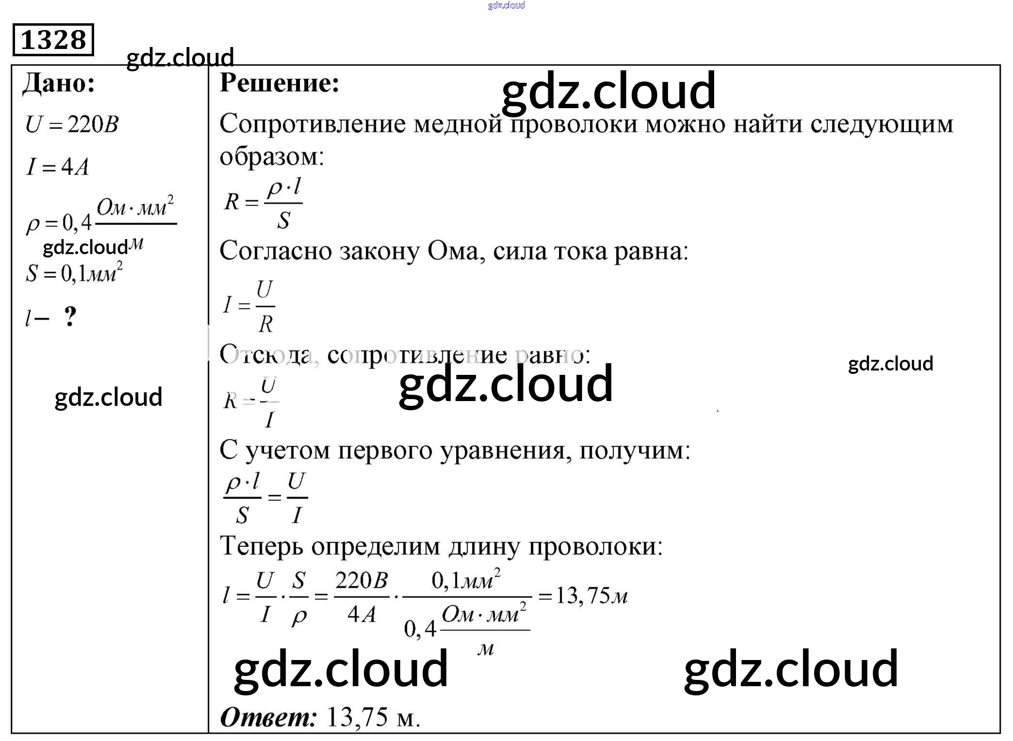 Ответ на задание 1328 Сборник задач Физика за 7, 8, 9 (седьмой, восьмой, девятый) класс Лукашик, Иванова 2011
