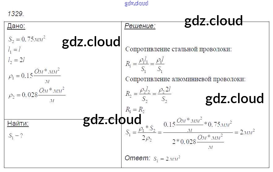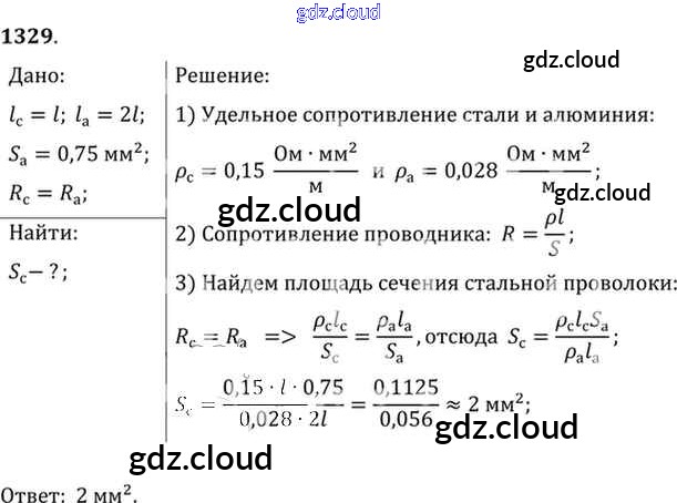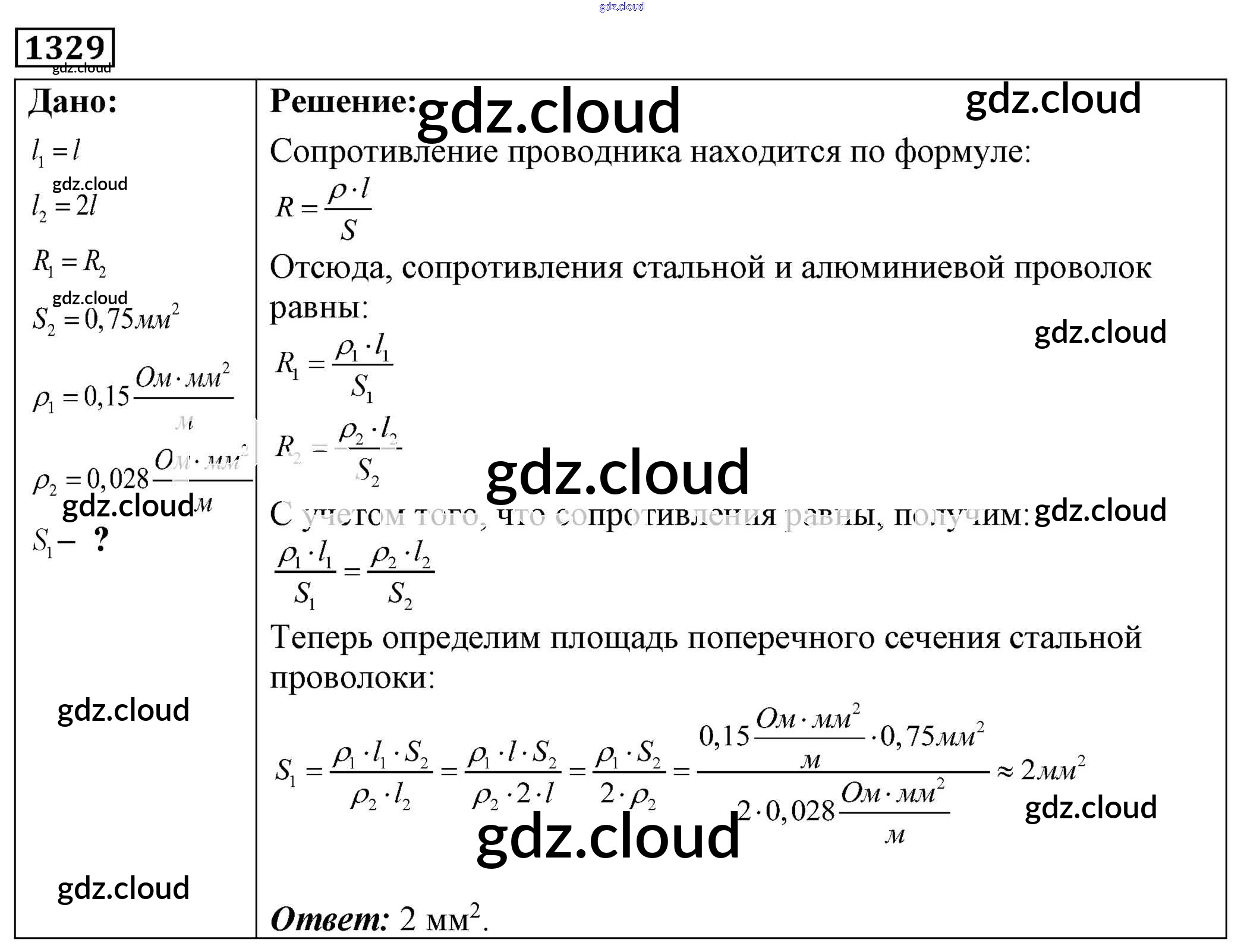 Ответ на задание 1329 Сборник задач Физика за 7, 8, 9 (седьмой, восьмой, девятый) класс Лукашик, Иванова 2011