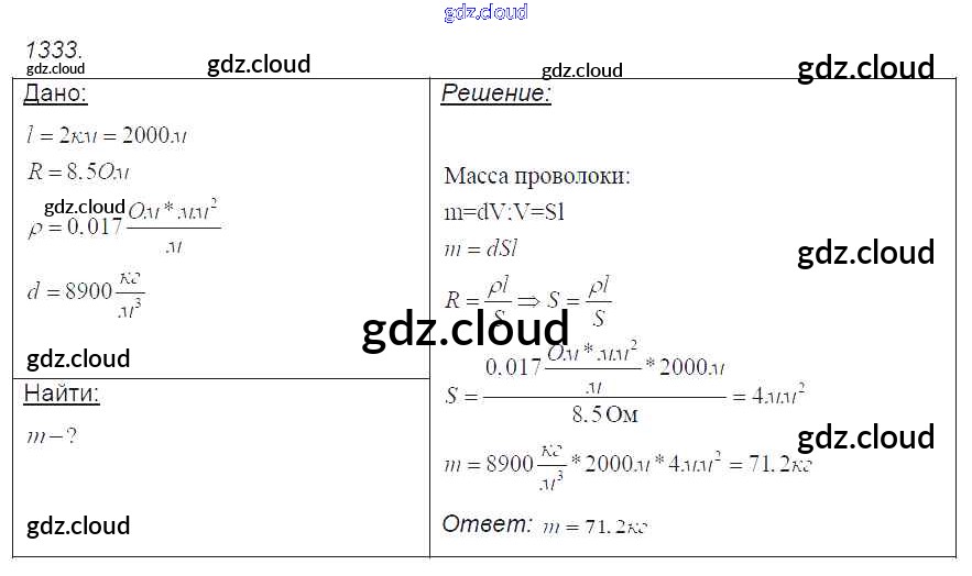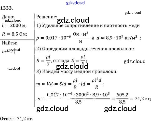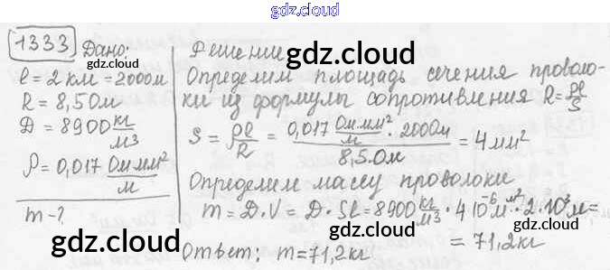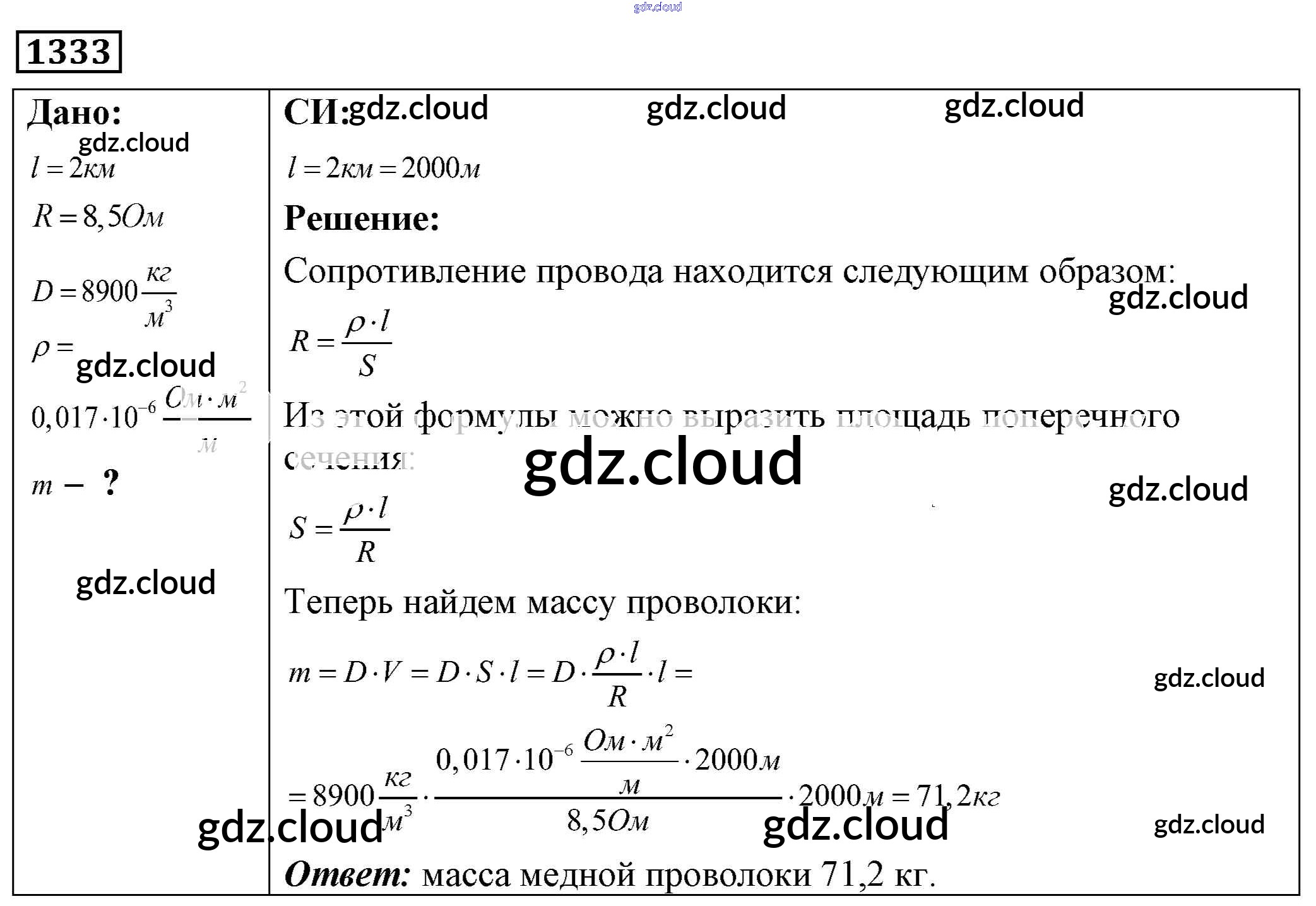 Ответ на задание 1333 Сборник задач Физика за 7, 8, 9 (седьмой, восьмой, девятый) класс Лукашик, Иванова 2011