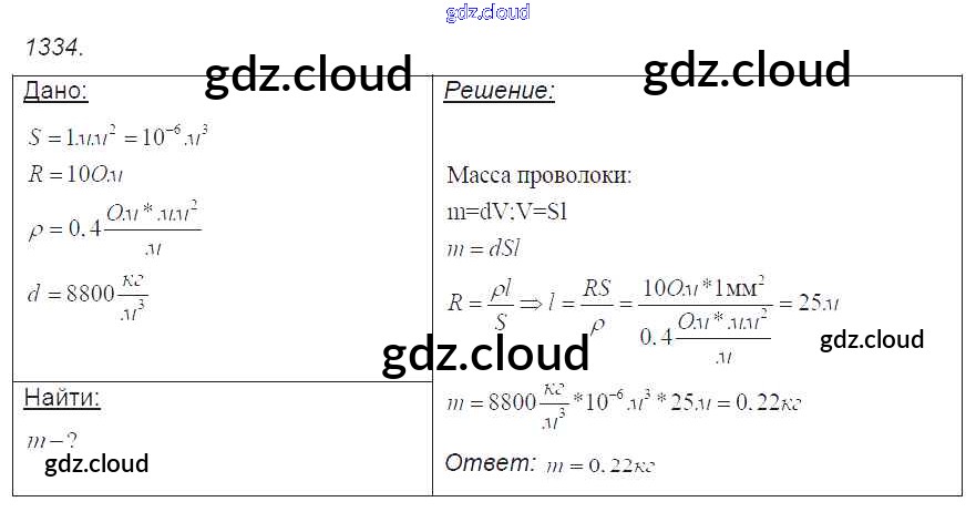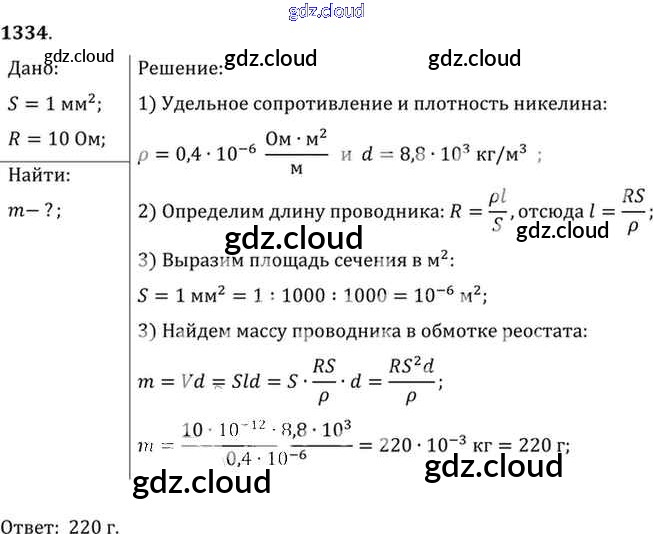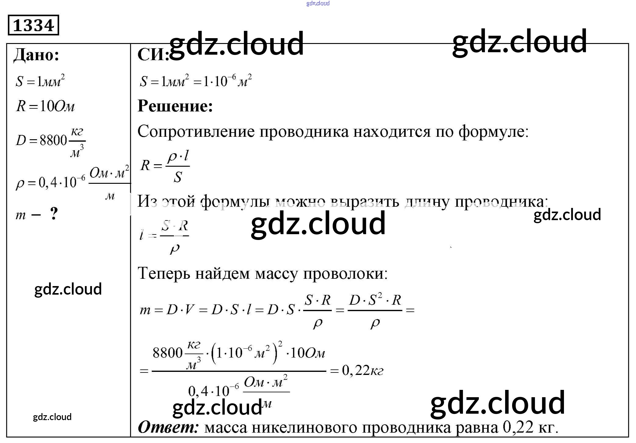 Ответ на задание 1334 Сборник задач Физика за 7, 8, 9 (седьмой, восьмой, девятый) класс Лукашик, Иванова 2011