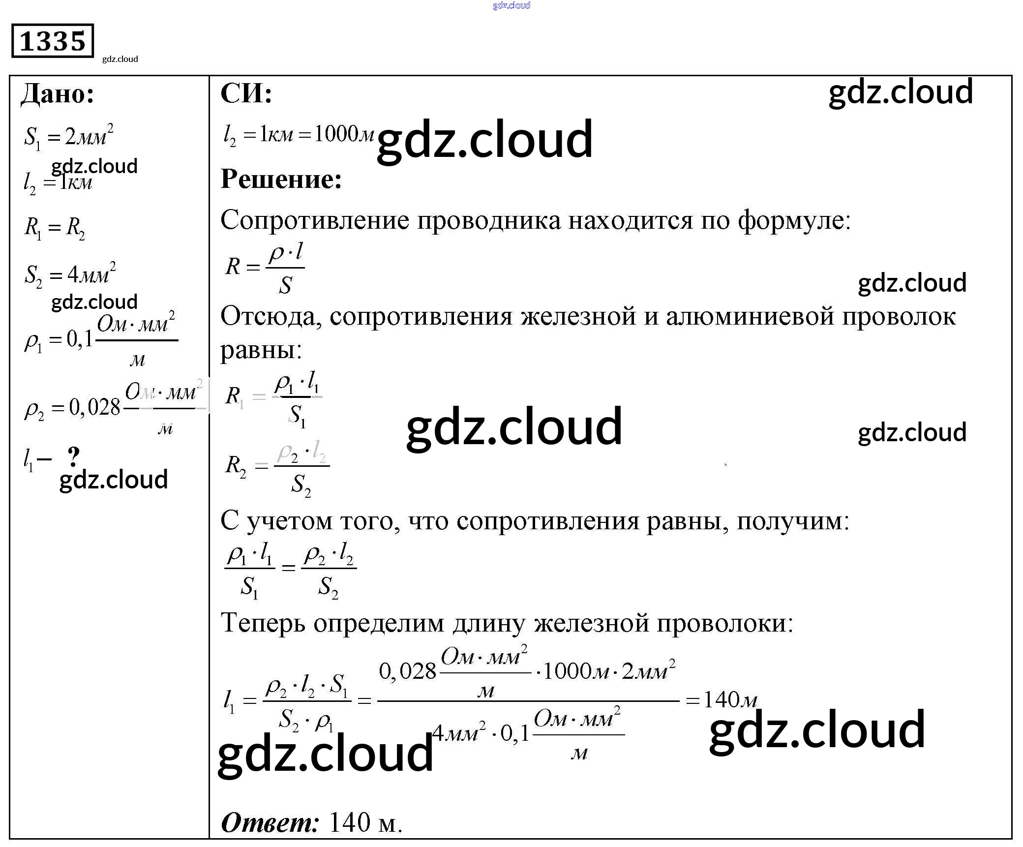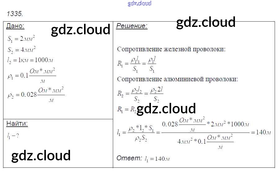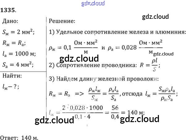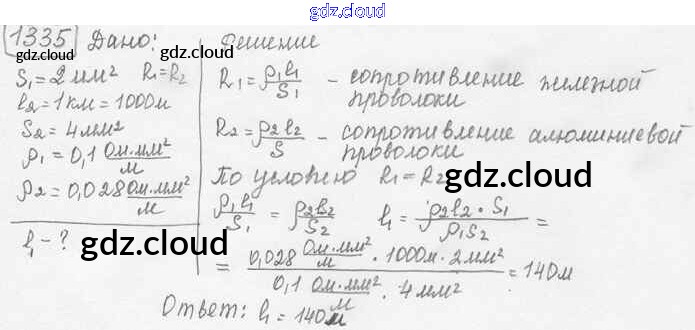 Ответ на задание 1335 Сборник задач Физика за 7, 8, 9 (седьмой, восьмой, девятый) класс Лукашик, Иванова 2011
