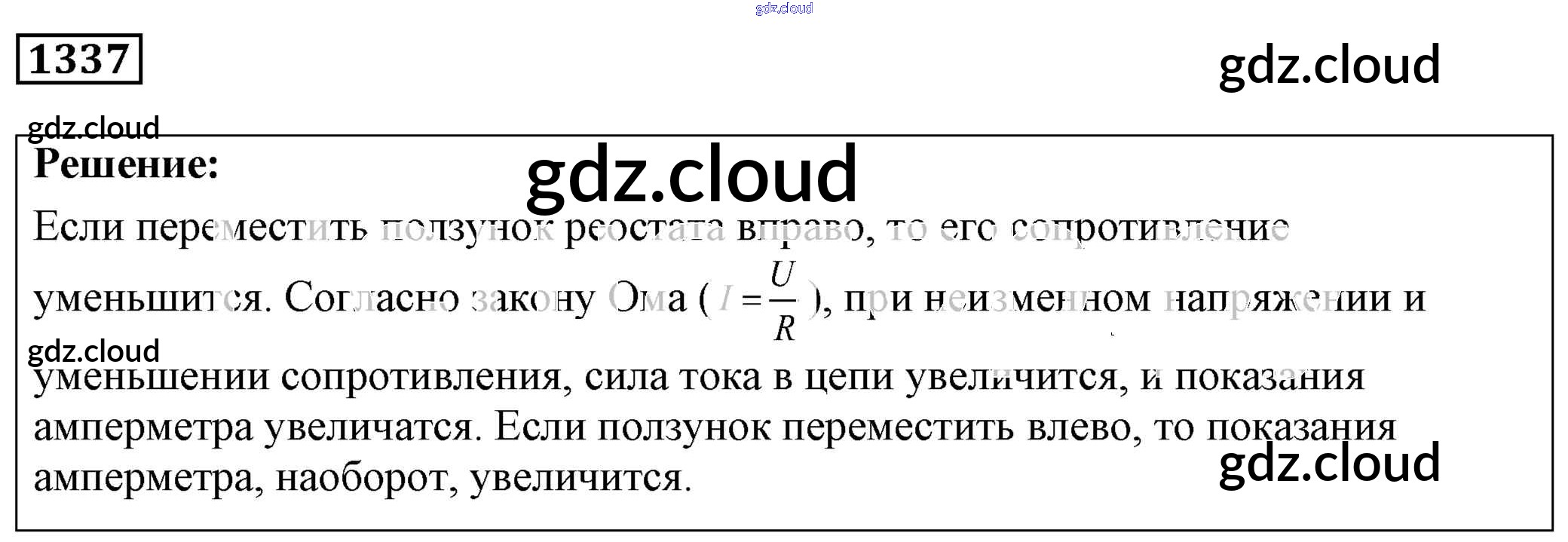 Ответ на задание 1337 Сборник задач Физика за 7, 8, 9 (седьмой, восьмой, девятый) класс Лукашик, Иванова 2011