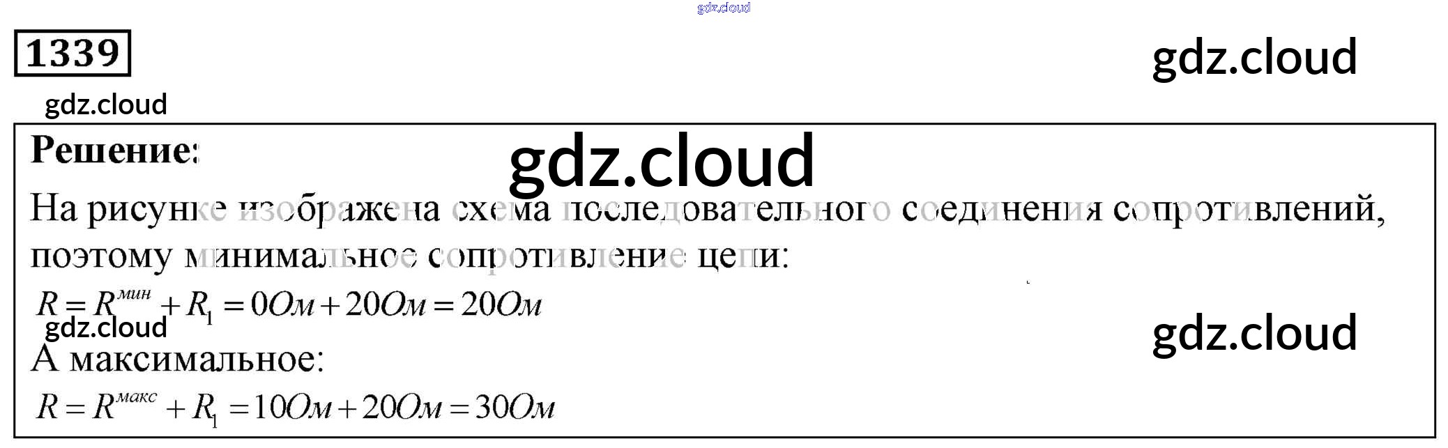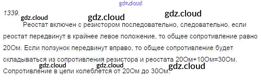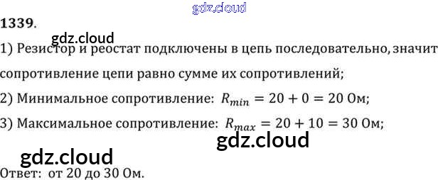 Ответ на задание 1339 Сборник задач Физика за 7, 8, 9 (седьмой, восьмой, девятый) класс Лукашик, Иванова 2011