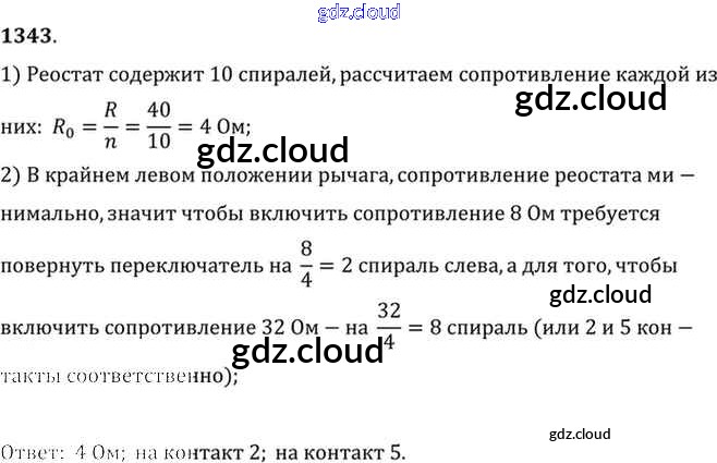 Ответ на задание 1343 Сборник задач Физика за 7, 8, 9 (седьмой, восьмой, девятый) класс Лукашик, Иванова 2011