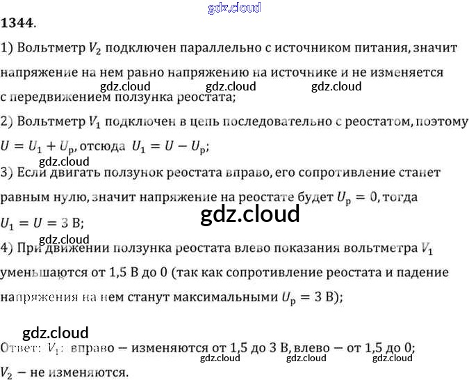 Ответ на задание 1344 Сборник задач Физика за 7, 8, 9 (седьмой, восьмой, девятый) класс Лукашик, Иванова 2011